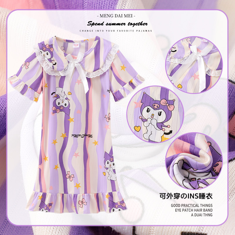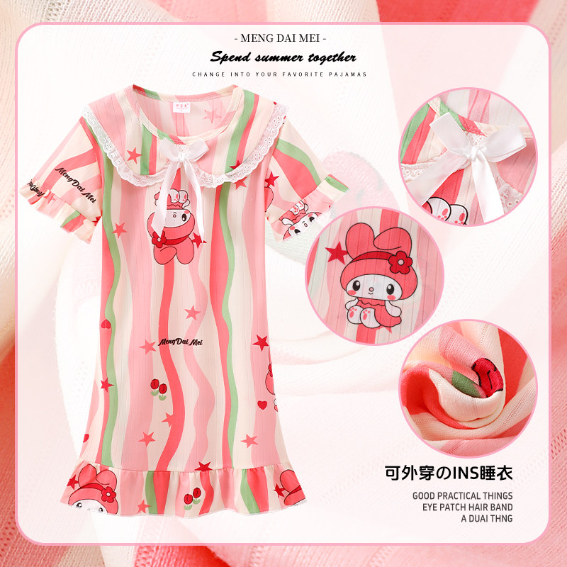 淘宝纯棉女童睡裙母女装夏季儿童睡衣短袖薄款小中大童卡通可爱连衣裙
