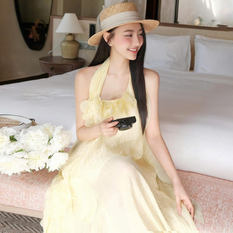 SylCue仙女度假风立体花饰显瘦飘逸挂脖连衣裙,融合浪漫与优雅,专为夏日度假与休闲时刻打造。采用轻盈飘逸的面料,搭配精致立体花朵装饰,视觉上层次丰富,尽显女性柔美气质。挂脖设计修饰肩颈线条,显瘦又显高,不规则裙摆与侧边开叉巧妙拉长腿部比例,行走间灵动生风。无论是海边漫步、花园约会还是日常出街,都能轻松驾驭,百搭不挑人。SylCue以细节诠释高级感,让每一位穿着者如仙女般轻盈自在,绽放独特魅力。