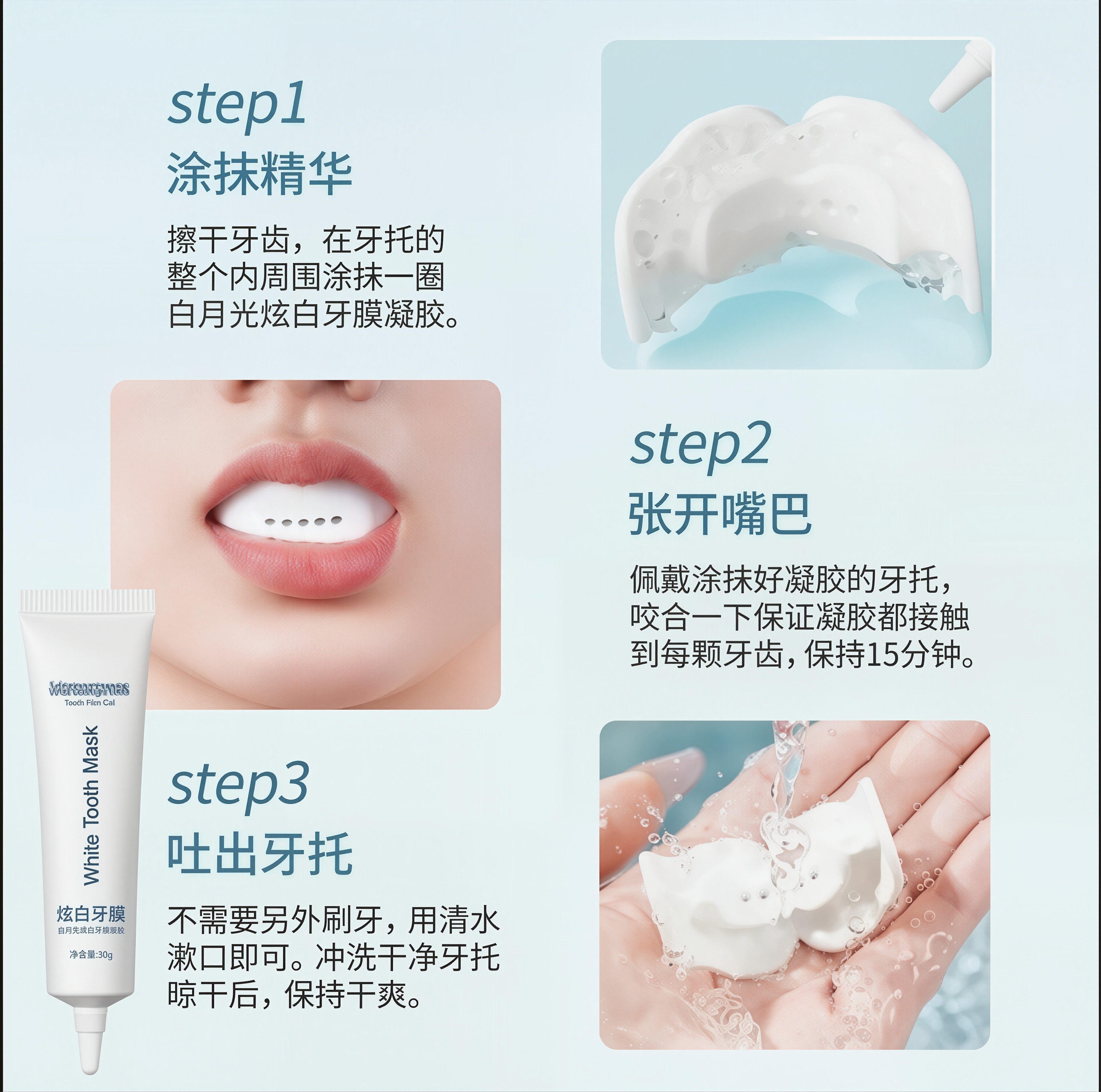 天哈恩6d微晶无水超粘式亮白牙贴3%过氧化氢牙齿贴片洁牙贴美白牙粉
