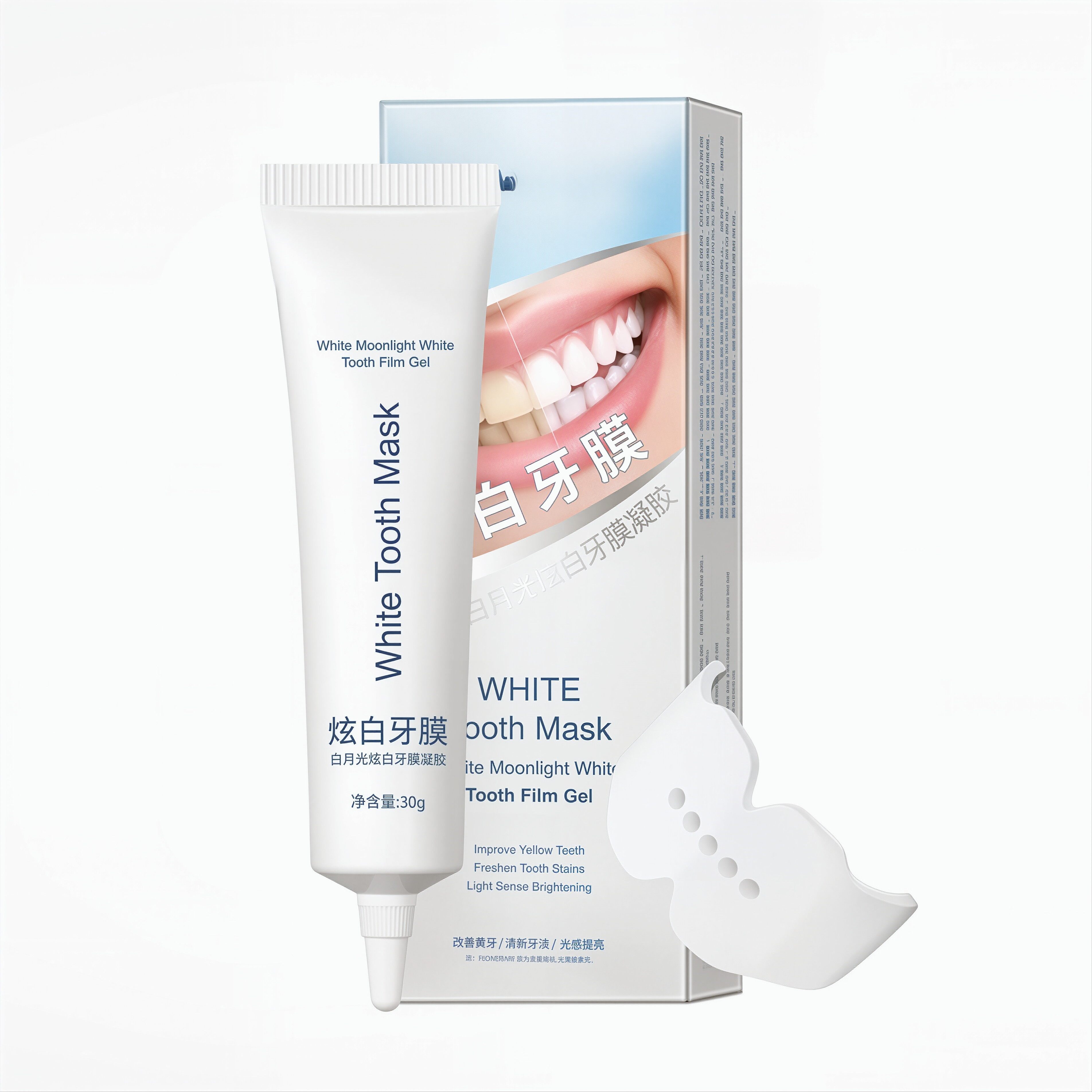 Dn白月光焕白牙膜是一款温和高效的牙齿美白产品,专为改善牙黄、咖啡渍、茶渍等色素沉积问题而设计。采用低敏配方,搭配凝胶质地牙贴,紧密贴合齿面,深入渗透牙釉质表层,有效分解色素,实现自然亮白。产品不含强酸强碱,温和去渍的同时呵护牙龈健康,避免敏感不适。坚持使用可显著提升牙齿光泽度,重现洁白笑容。适用于日常护理,安全便捷,让您轻松拥有自信炫白齿色,绽放迷人微笑。Dn白月光,点亮每一刻光彩。