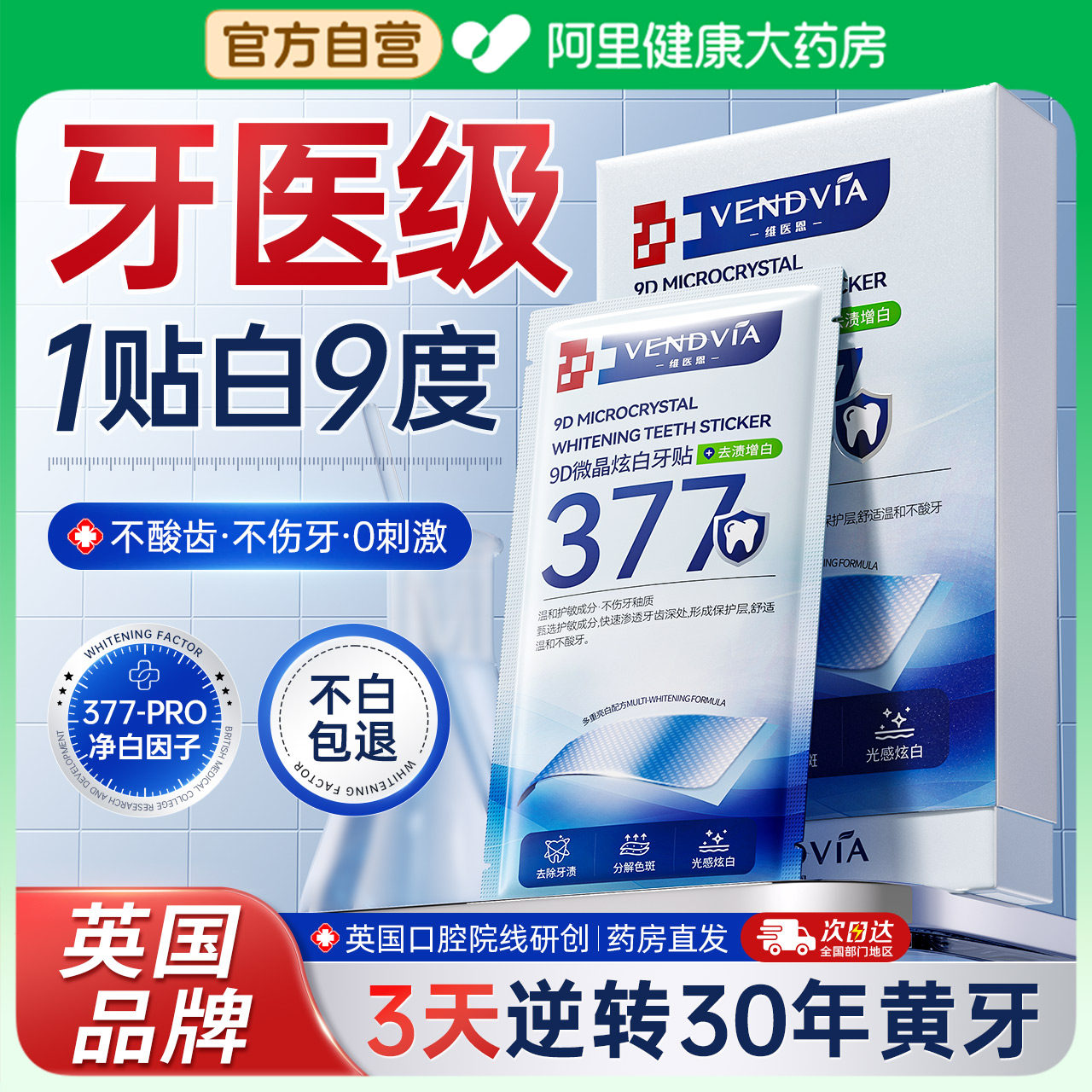 天377美白牙贴牙齿强效去黄洁白牙膜贴片牙黄烟渍牙垢炫白变白神器
