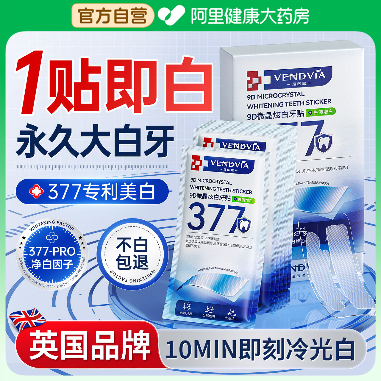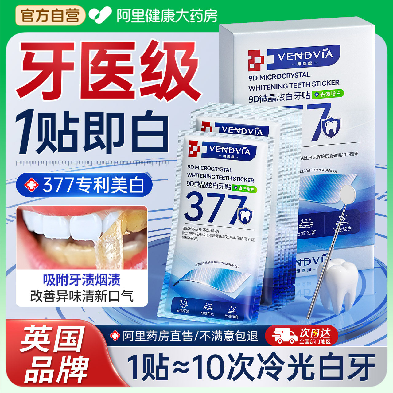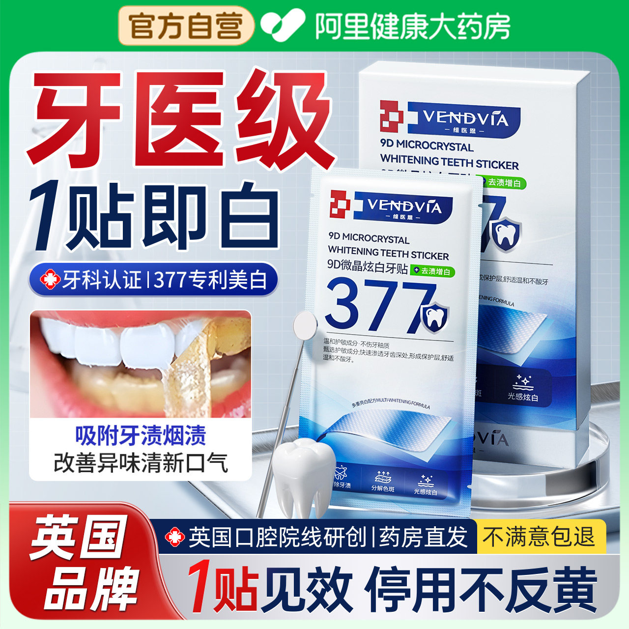 天猫377美白牙贴牙齿强效去黄洁白牙膜贴片炫白牙黄烟渍牙垢变白神器