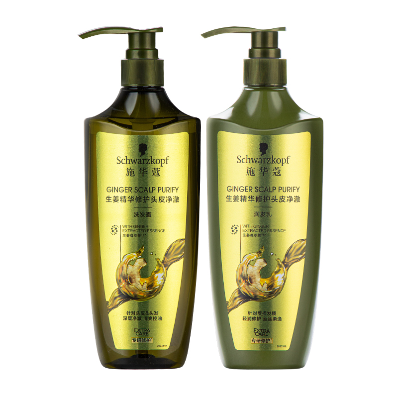 施华蔻生姜洗发水露头皮净澈精华修护烫染受损护发素,专为烫染受损及油性头皮人群设计。蕴含天然生姜精华,深层清洁头皮,有效控油,令秀发清爽蓬松不扁塌。搭配净澈精华修护护发素,能深入修护因烫染造成的发丝损伤,补充流失营养,增强发丝强韧度与光泽感。温和配方不刺激头皮,洗后发丝顺滑易梳理,同时保持头皮水油平衡。适合日常使用,尤其推荐给频繁造型、烫染或头皮易出油人群,帮助打造健康清爽的头皮环境与强韧亮泽的发质,焕发自然活力。
