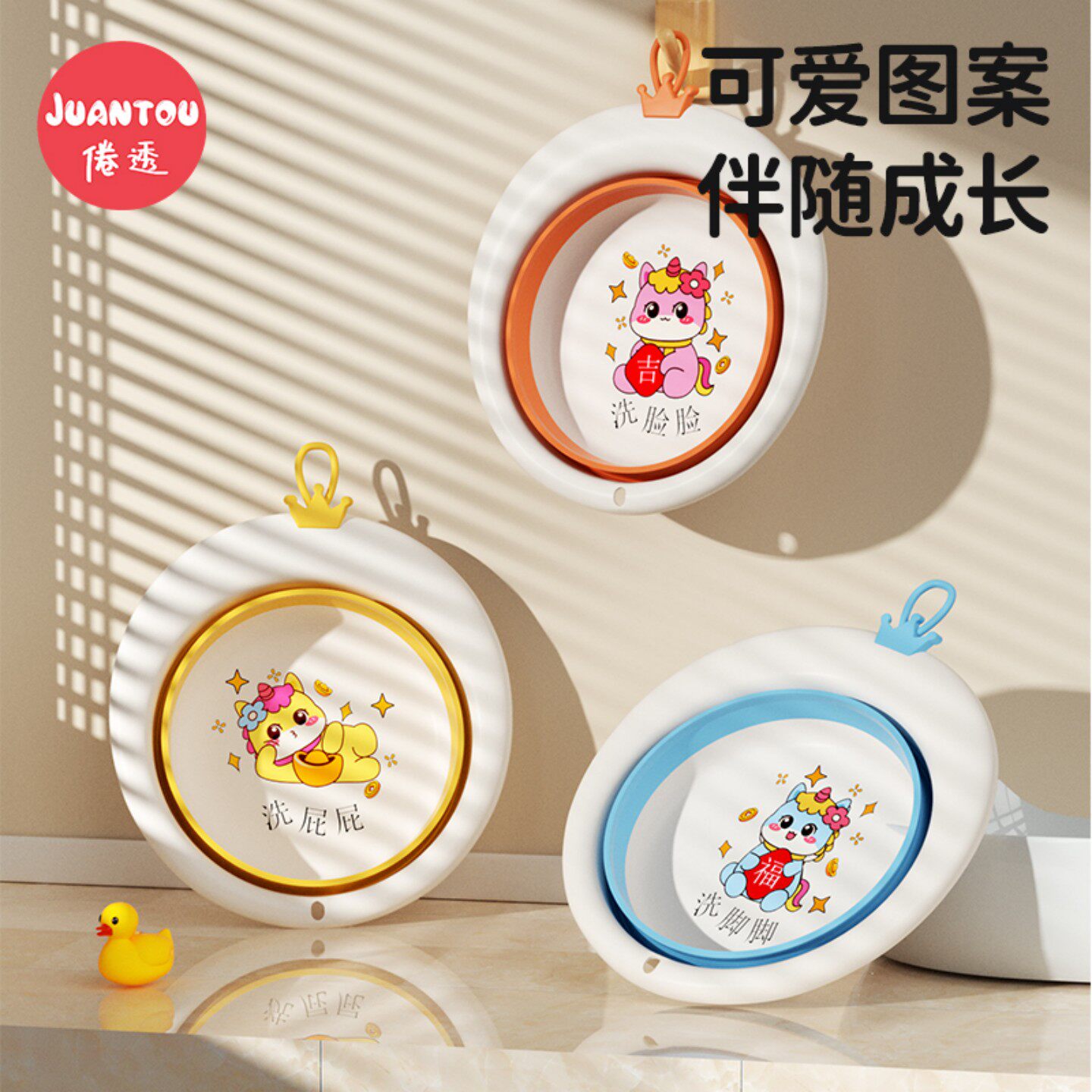 天猫婴儿洗脸盆可折叠儿童脸盆三件套新生儿宝宝专用洗屁屁洗脚小盆子