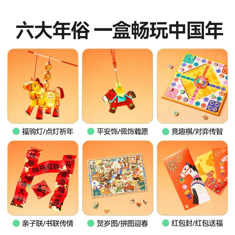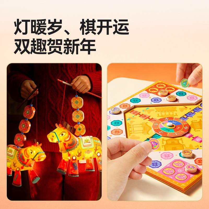 mideer弥鹿马年礼盒是一款专为春节设计的创意手工灯笼礼盒,融合传统年味与现代童趣,适合男女儿童使用。礼盒内含环保材质制作的手工灯笼组件、彩绘工具及新年主题装饰贴纸,孩子可亲手组装、涂色,锻炼动手能力与创造力。成品灯笼造型可爱,融入马年吉祥元素,点亮后可营造温馨节日氛围,既是新年礼物,也是家居装饰品。安全无毒材料,操作简单,寓教于乐,让孩子在动手中感受传统文化魅力,是春节走亲访友、亲子互动的理想选择,传递浓浓年味与美好祝福。