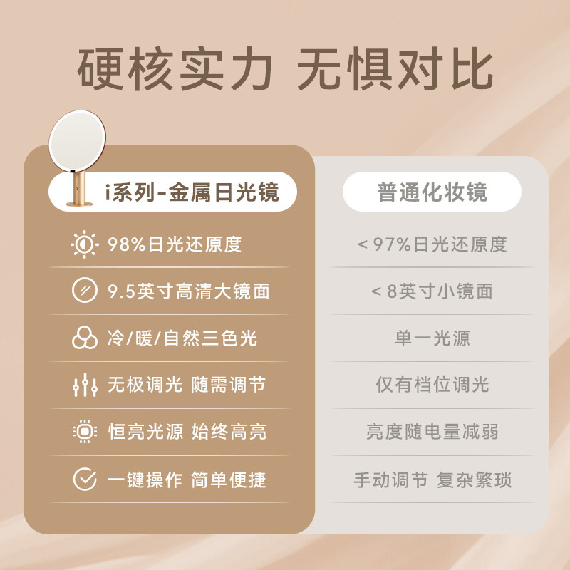 天猫MUID金属镜台式led智能补光桌面梳妆镜高清化妆全光谱美妆镜圆镜