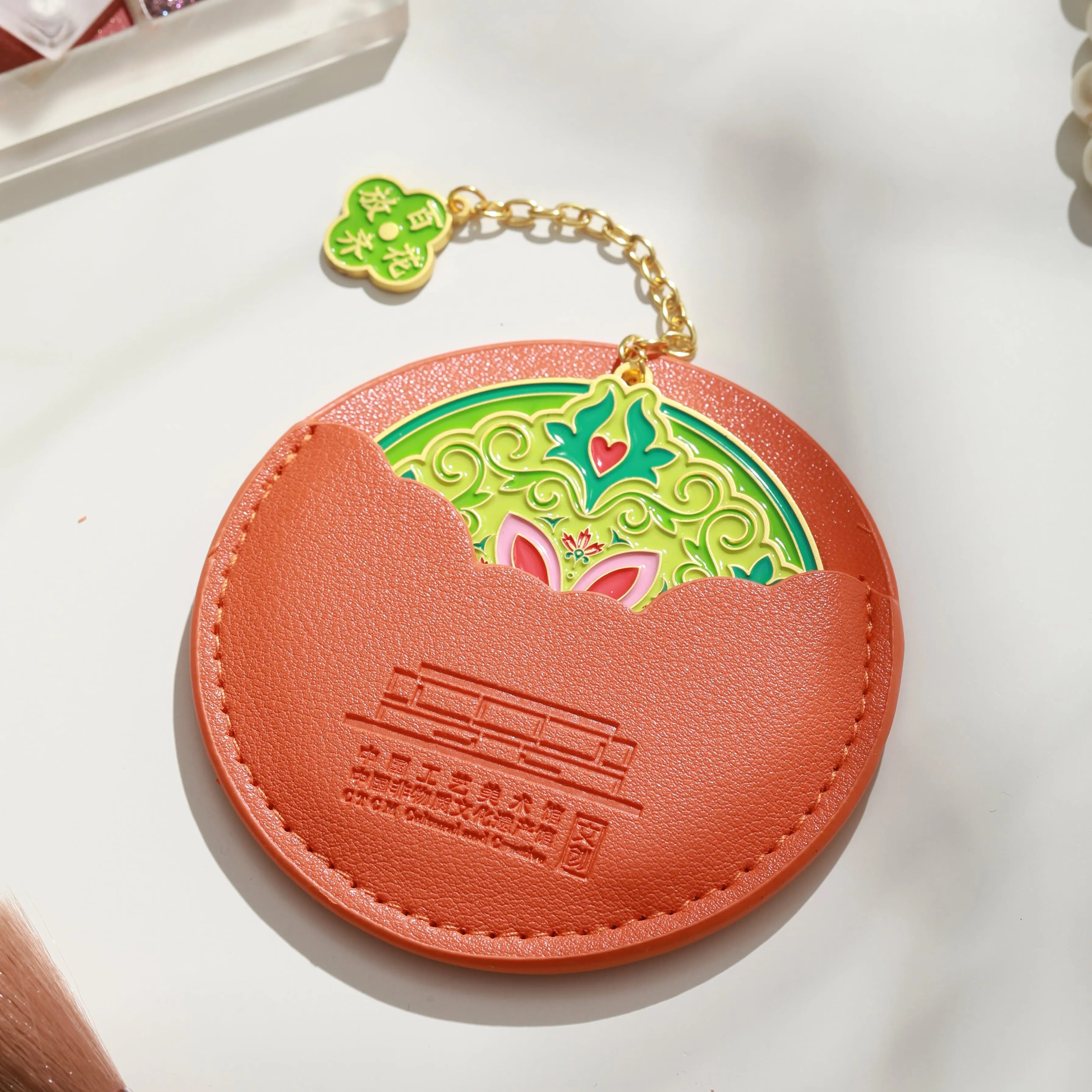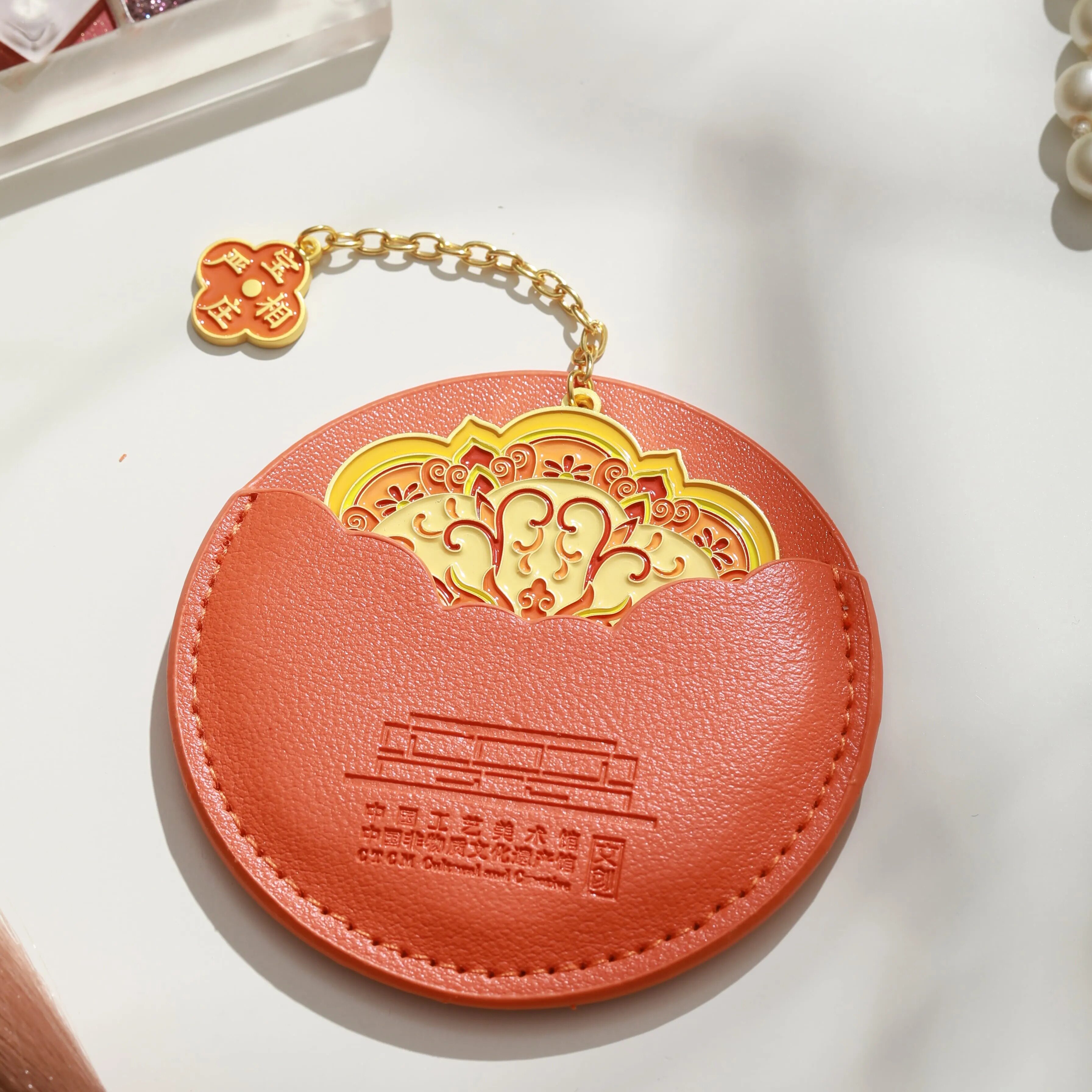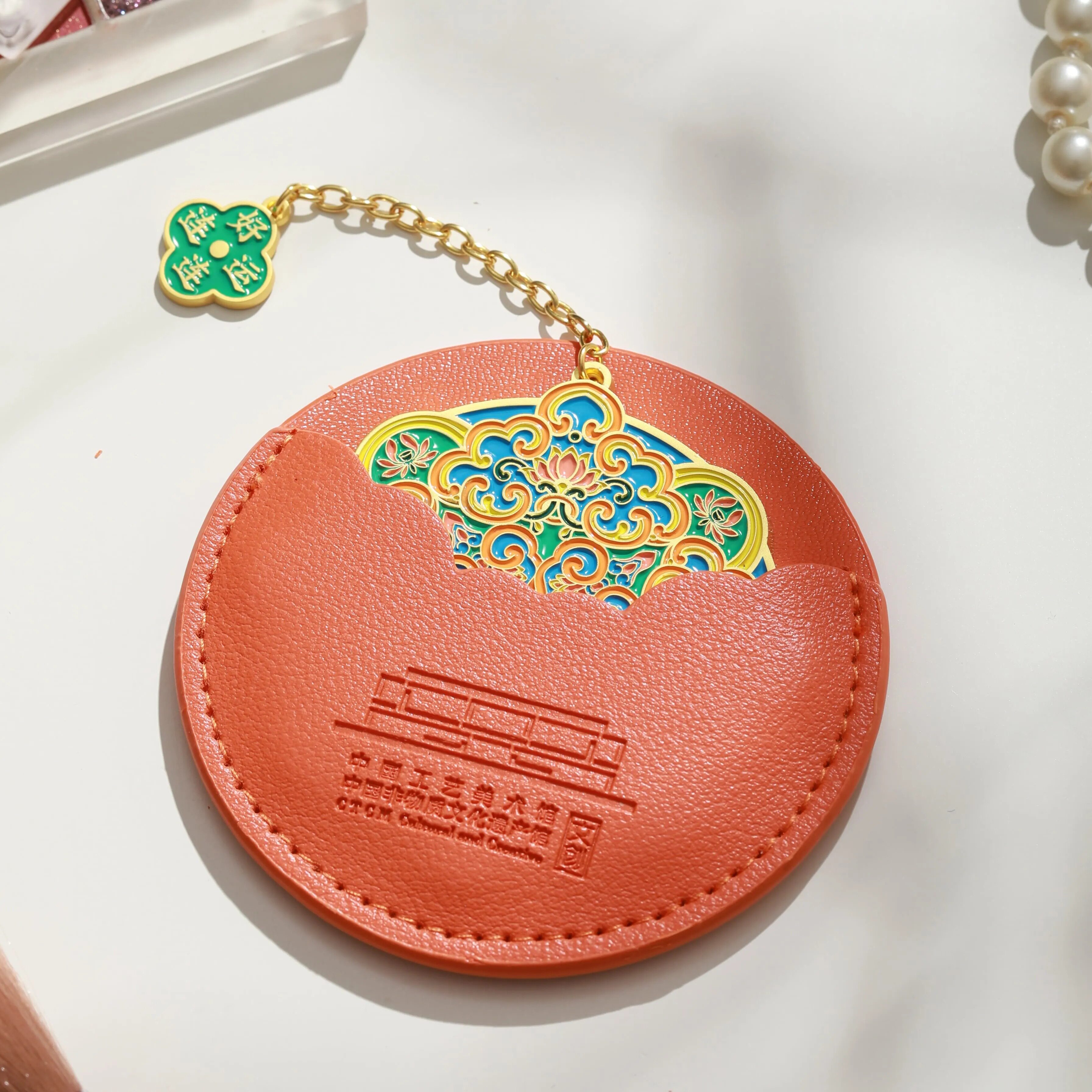 淘宝中国工艺美术馆花纹随身镜金属便携手持带皮套化妆镜文创送礼物