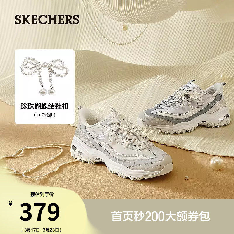 天猫斯凯奇闪穿蝴蝶鞋2026夏季新款熊猫鞋老爹鞋厚底增高休闲运动女鞋