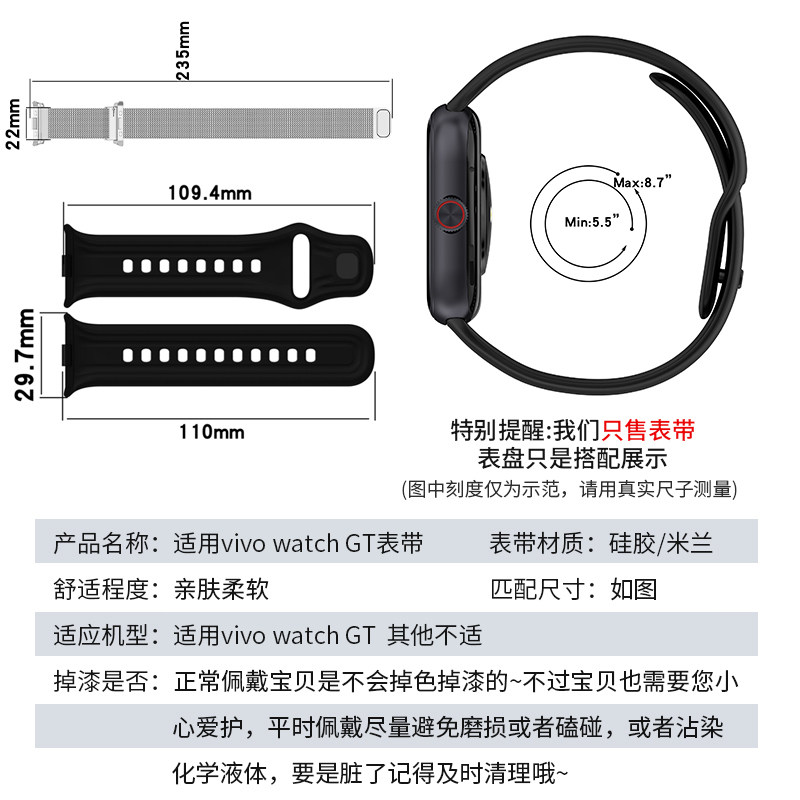 天猫适用于vivowatchgt表带 vivo watch gt iQOO WATCH GT硅胶磁吸智能手表腕带手表带