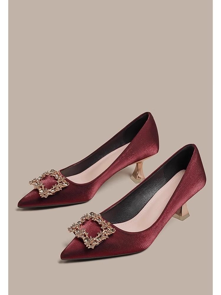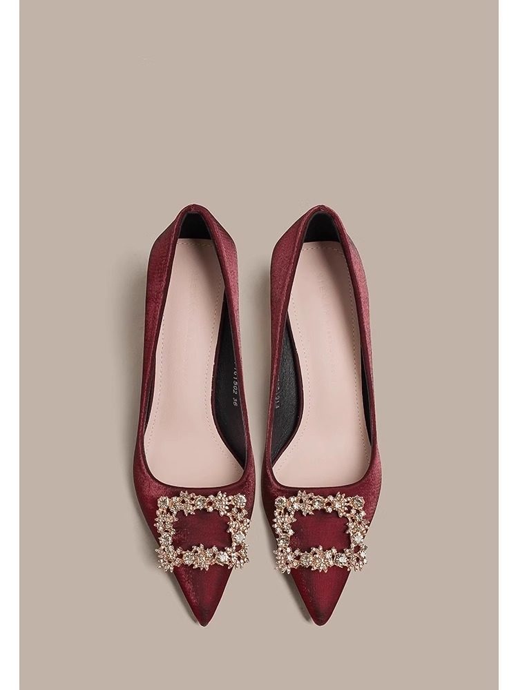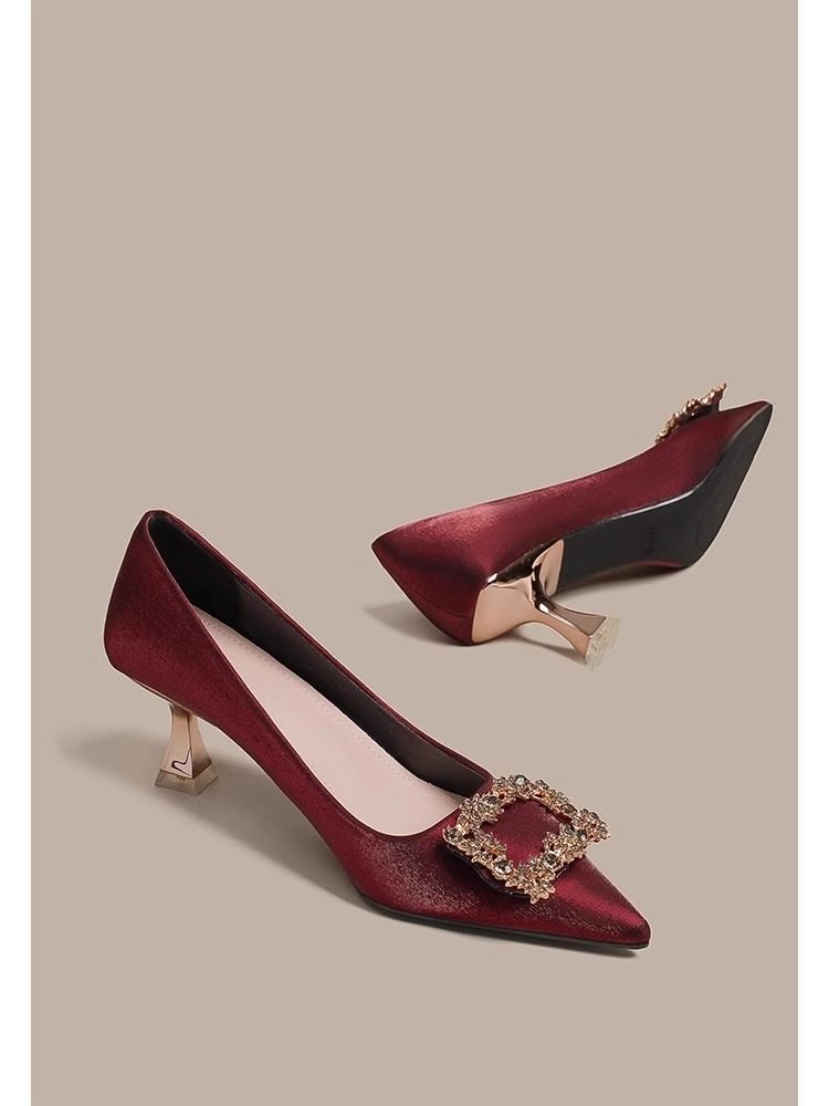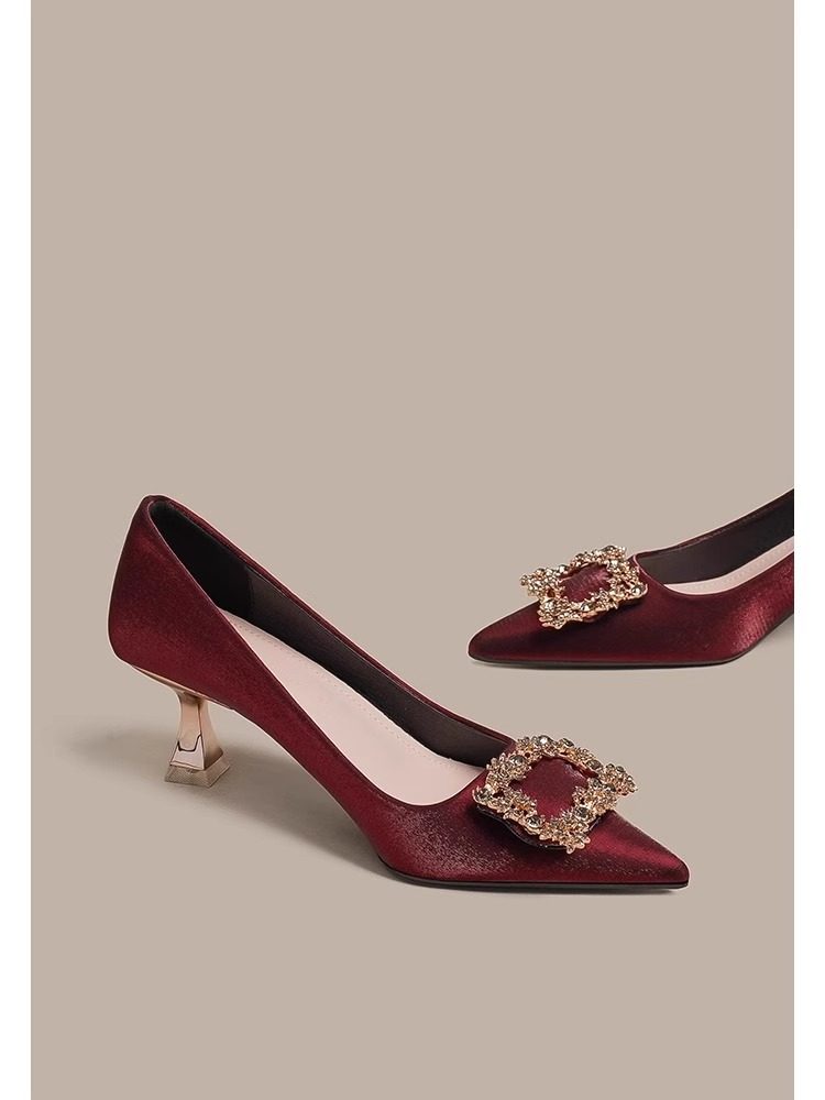 淘宝红色秀禾结婚鞋女2025夏季新款气质尖头水钻方扣不累脚新娘高跟鞋