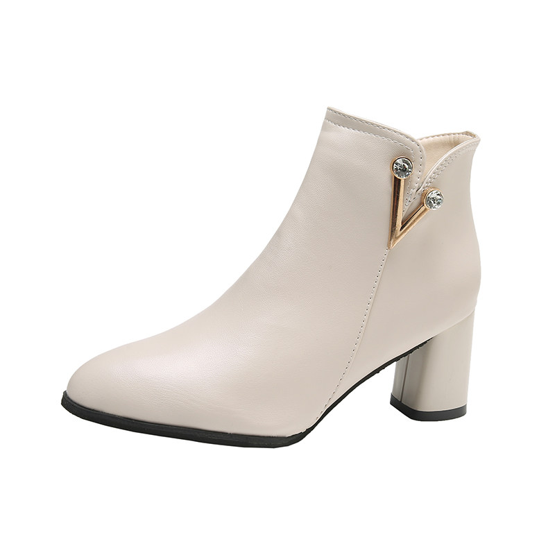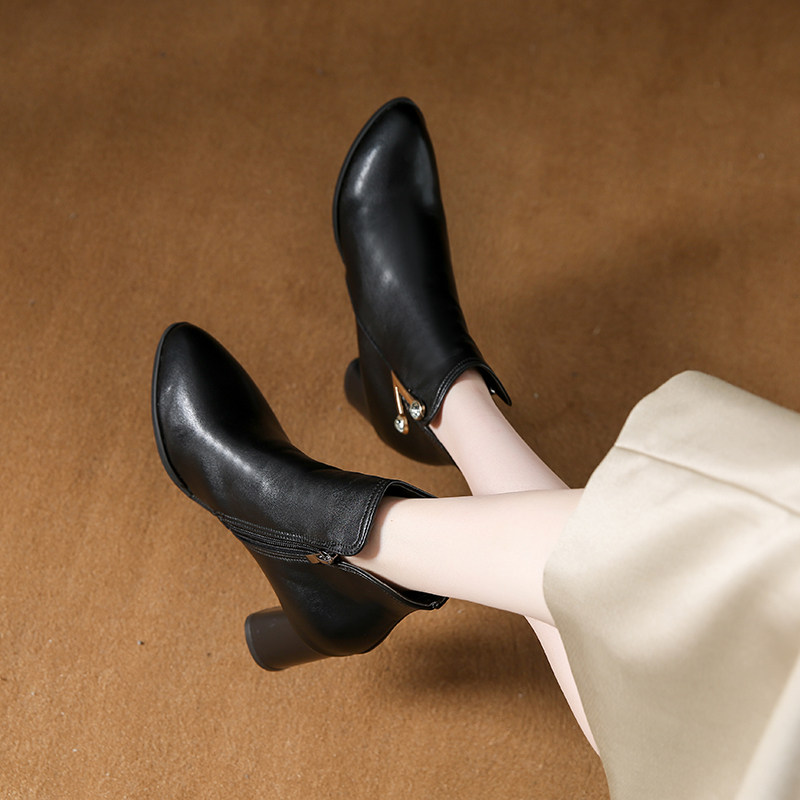 淘宝2025冬季真皮马丁靴女圆头粗跟短筒靴百搭侧拉链高跟靴女显瘦短靴