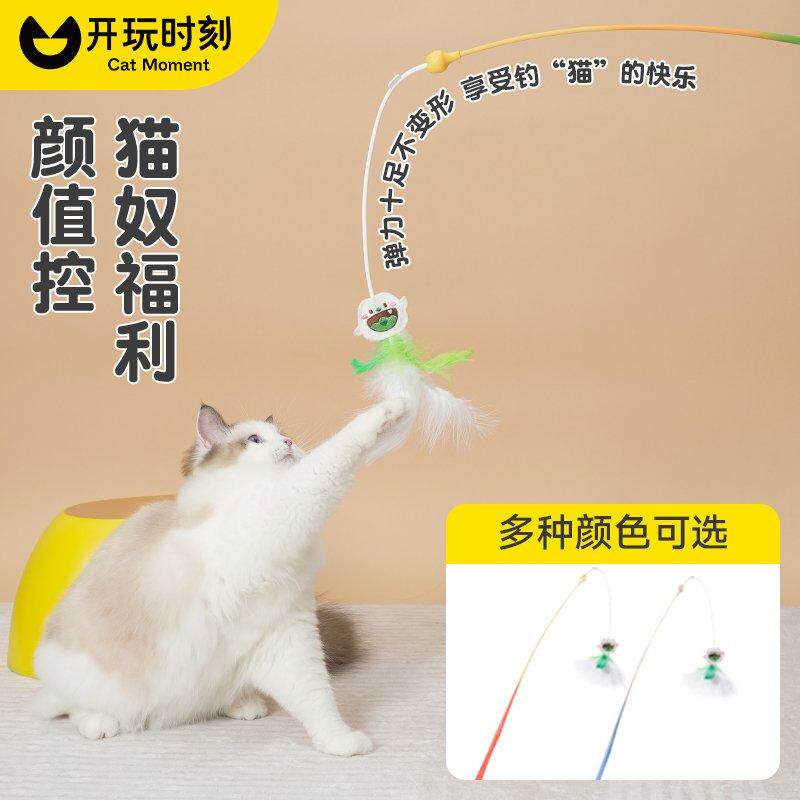 开玩时刻逗猫棒长杆猫猫玩具替换头耐咬猫咪解闷自嗨仿真幼猫用品