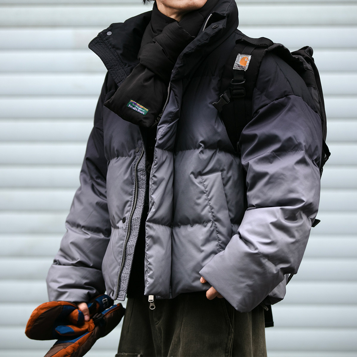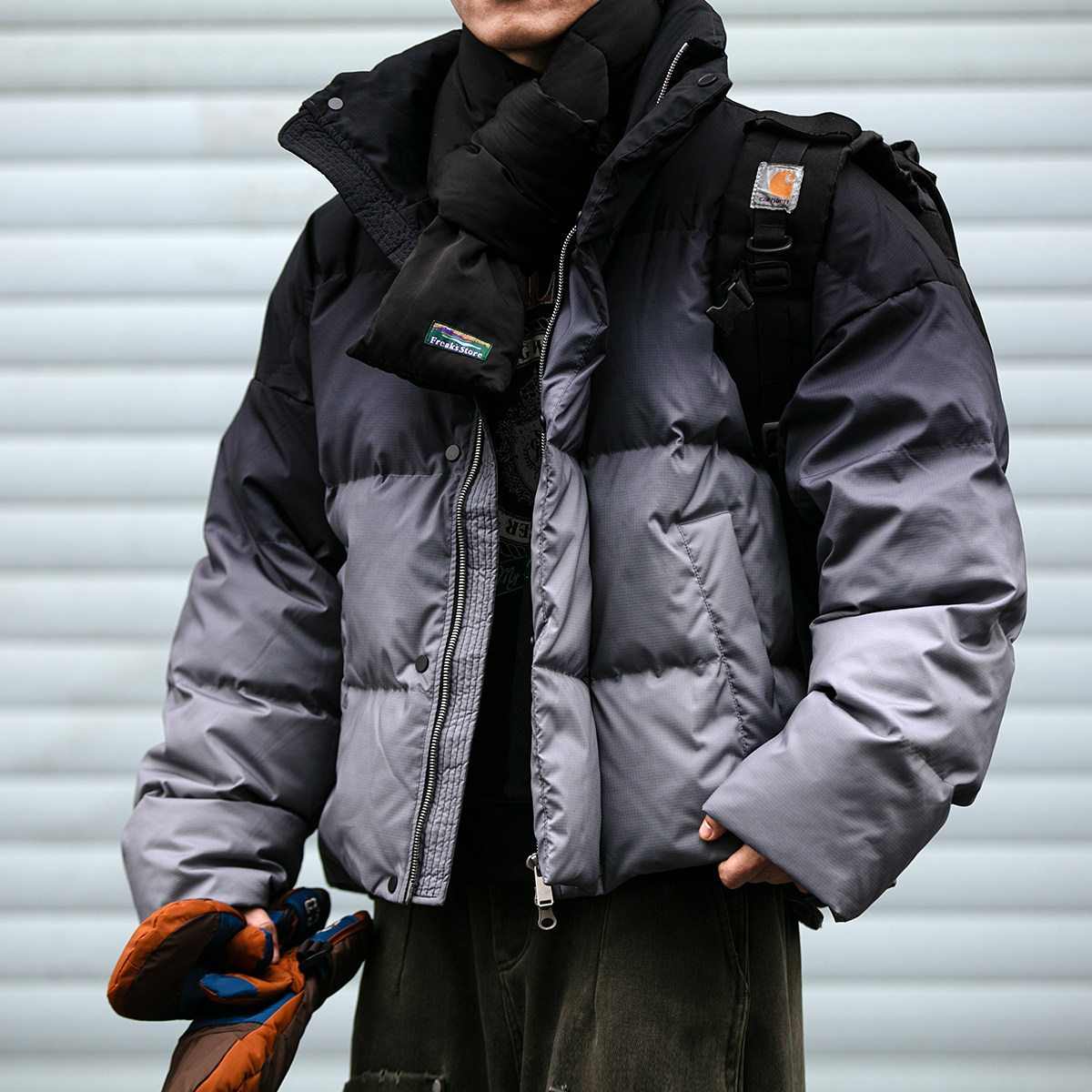 淘宝冬季渐变色90白鸭绒羽绒服男高充绒潮牌宽松保暖防风立领加厚外套