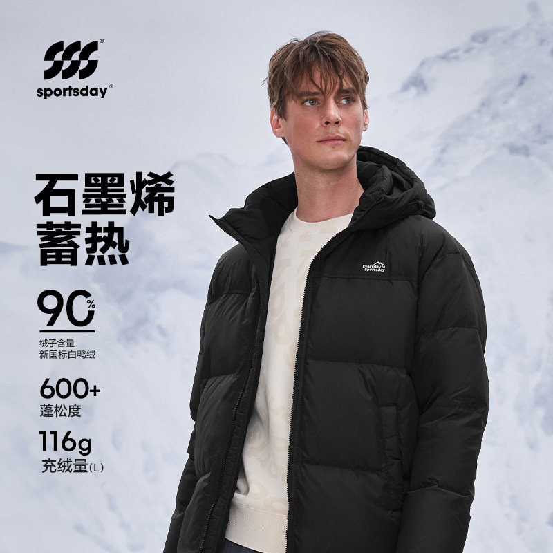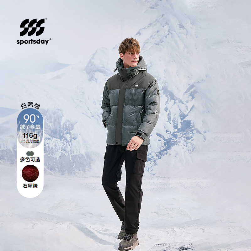 天猫运动sportsday羽绒服25秋冬款新连帽保暖鸭绒外套男