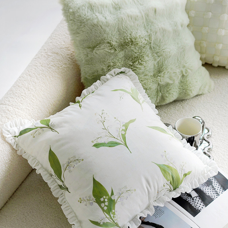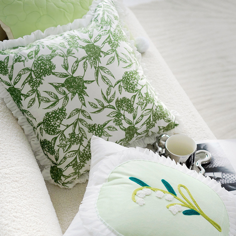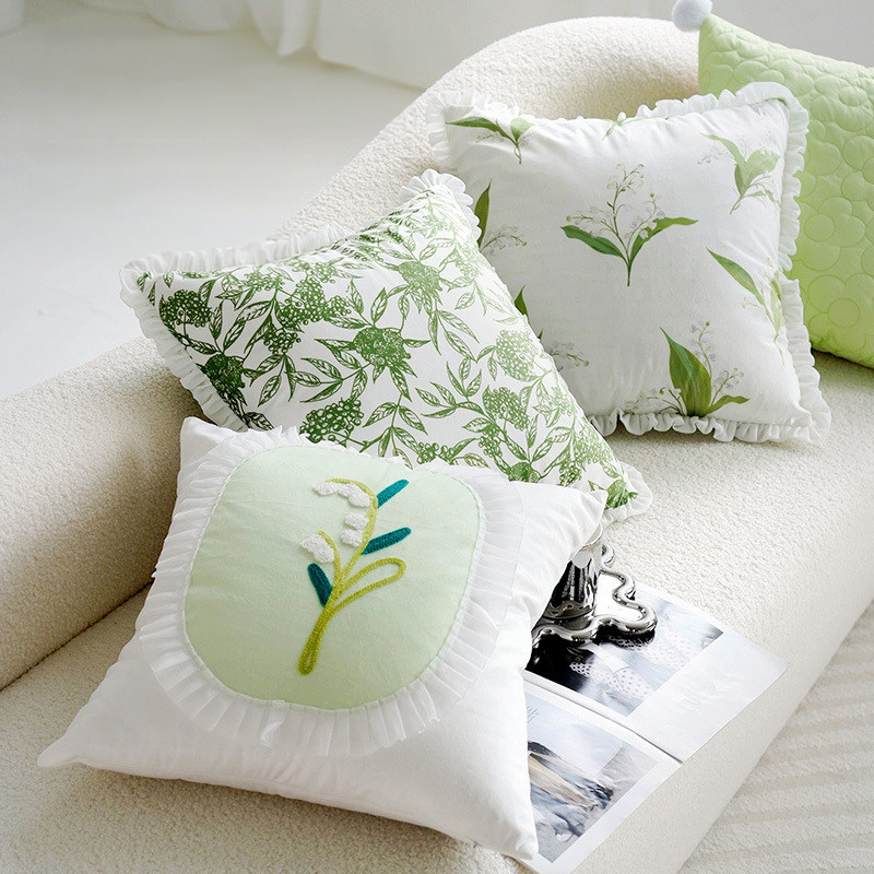 淘宝北欧可爱抱枕套绿色风铃靠枕沙发花朵飘窗靠垫床上绿色客厅小清新