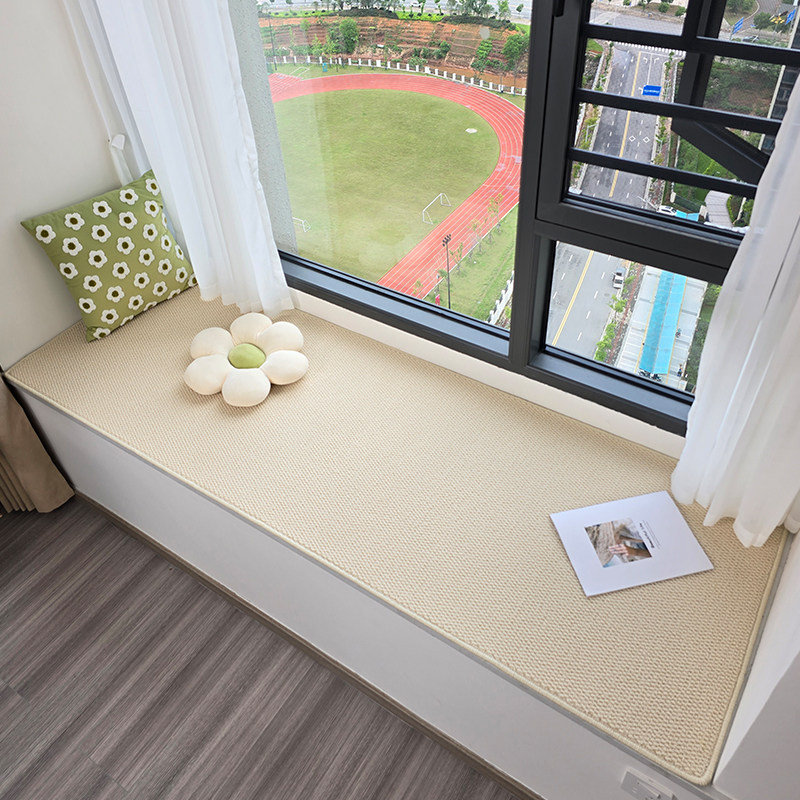 淘宝奶油风纯色飘窗垫主卧四季通用仿剑麻阳台垫子防猫抓可裁剪窗台垫