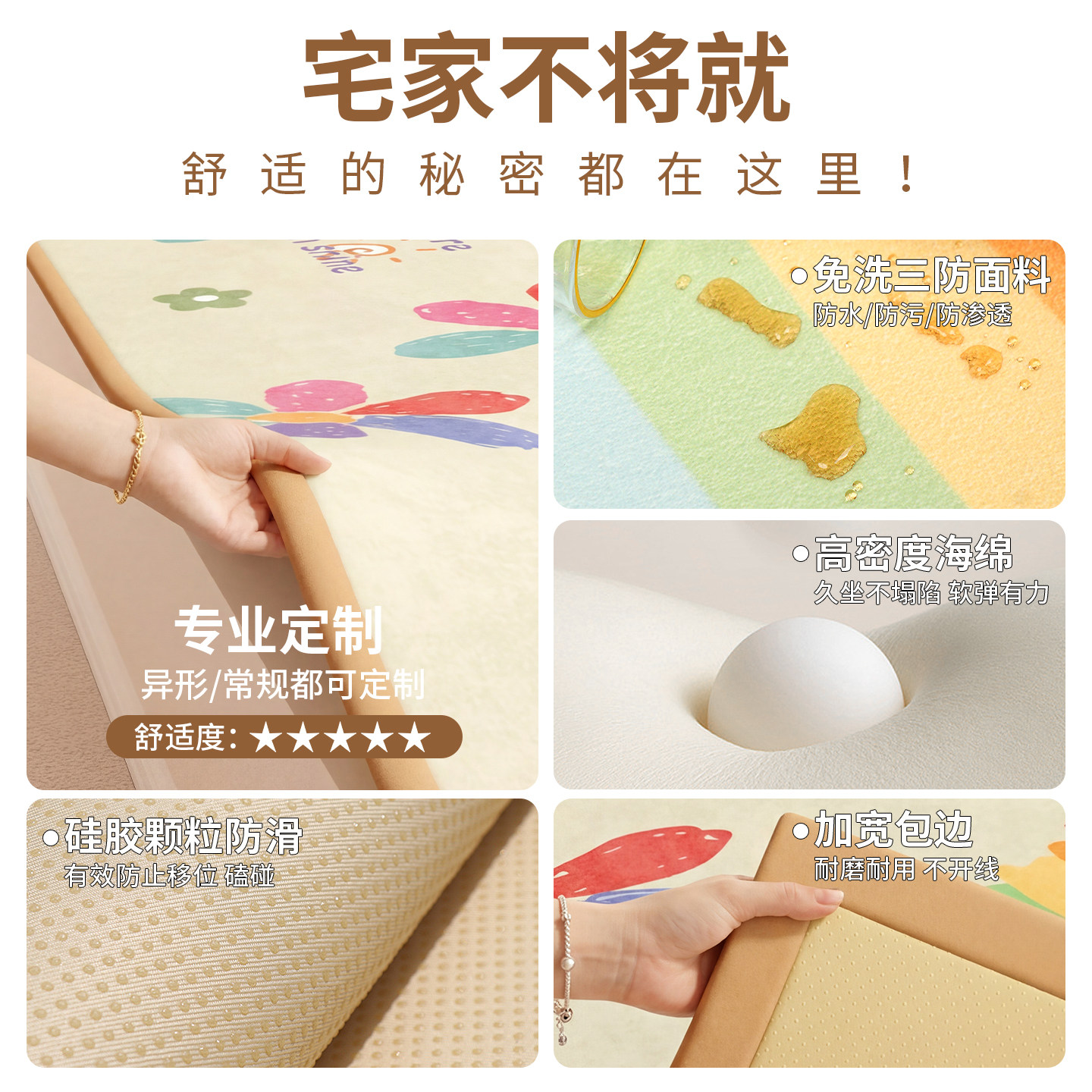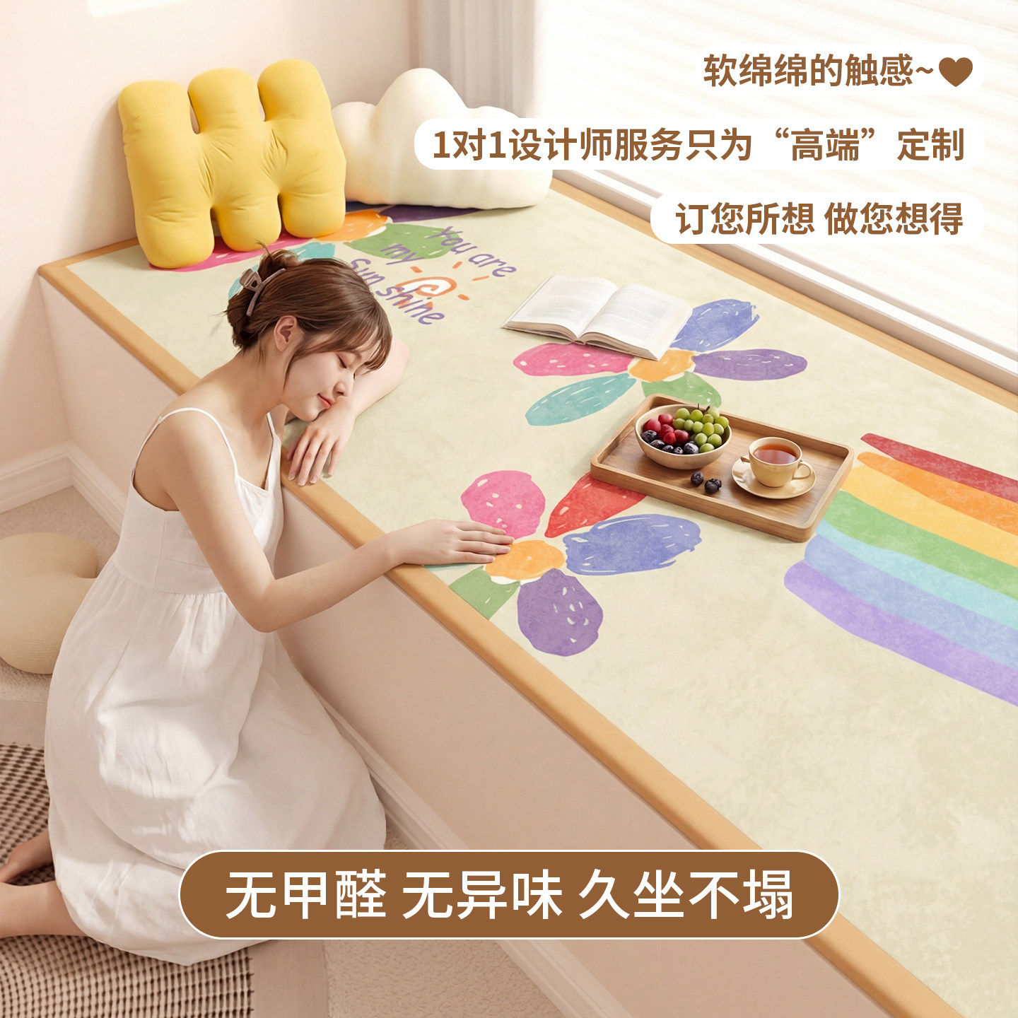 2025新款加厚飘窗垫,专为儿童房、主卧室及阳台榻榻米设计,四季通用,舒适升级。采用高密度回弹海绵填充,厚度达5-8厘米,久坐不塌陷,有效缓解腰部压力。表层选用亲肤透气面料,冬暖夏凉,易清洁打理。防滑底面设计,稳固贴合窗台,安全防移位。简约现代风格,多色可选,轻松融入各种家居环境。无论是阅读、休憩还是亲子互动,都能提供柔软支撑与温馨体验。环保材质,无异味,呵护家人健康。一款集美观、实用与安全于一体的窗台坐垫,让居家时光更惬意舒适。