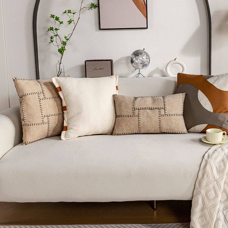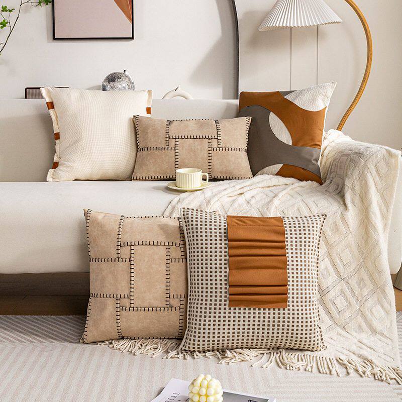 淘宝小红书抖音网红咖色拼接抱枕靠垫沙发软装飘窗靠枕床头靠背抱枕套