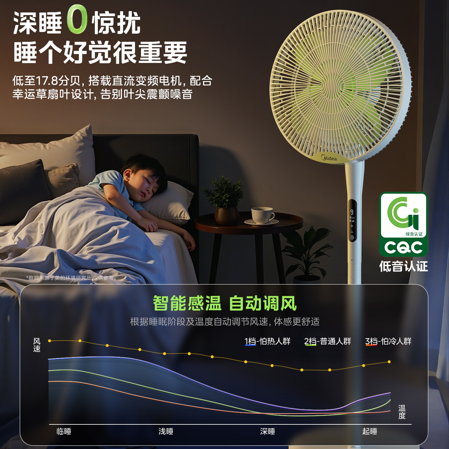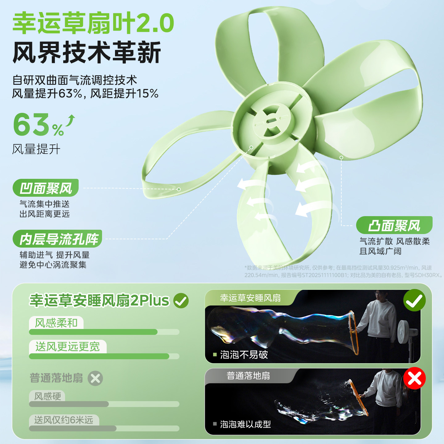天猫美的电风扇落地扇家用音静幸运草安睡大风力无刷电机26新款2Plus