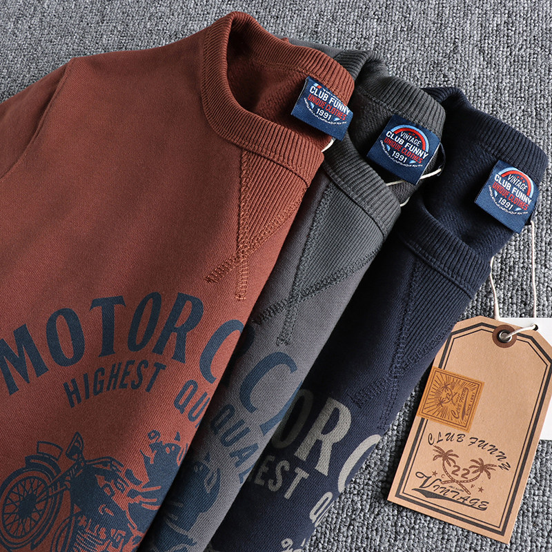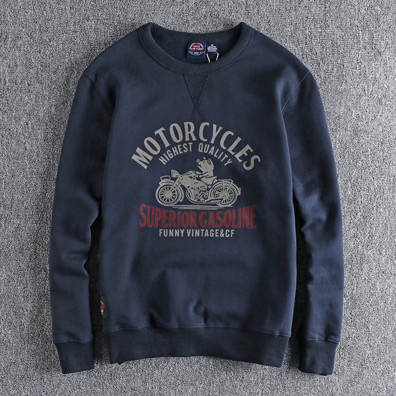 淘宝趣味机车小猪印花圆领卫衣男 420G高克重加绒厚实软糯青年棉上衣