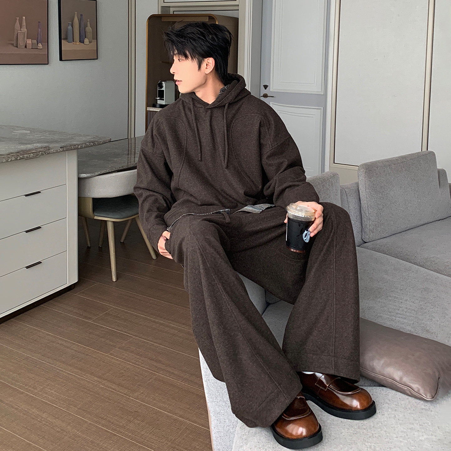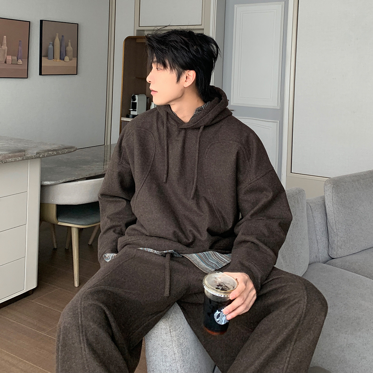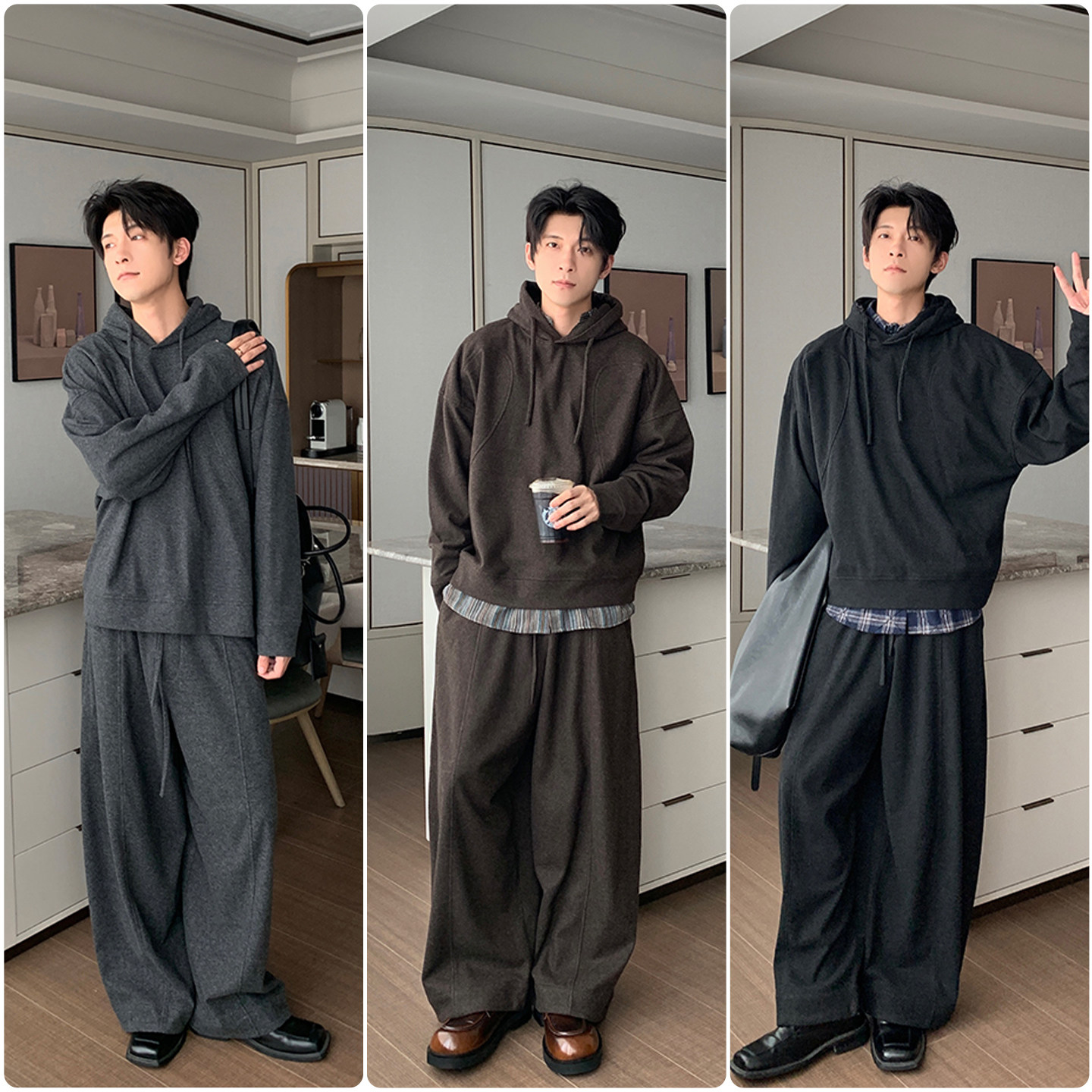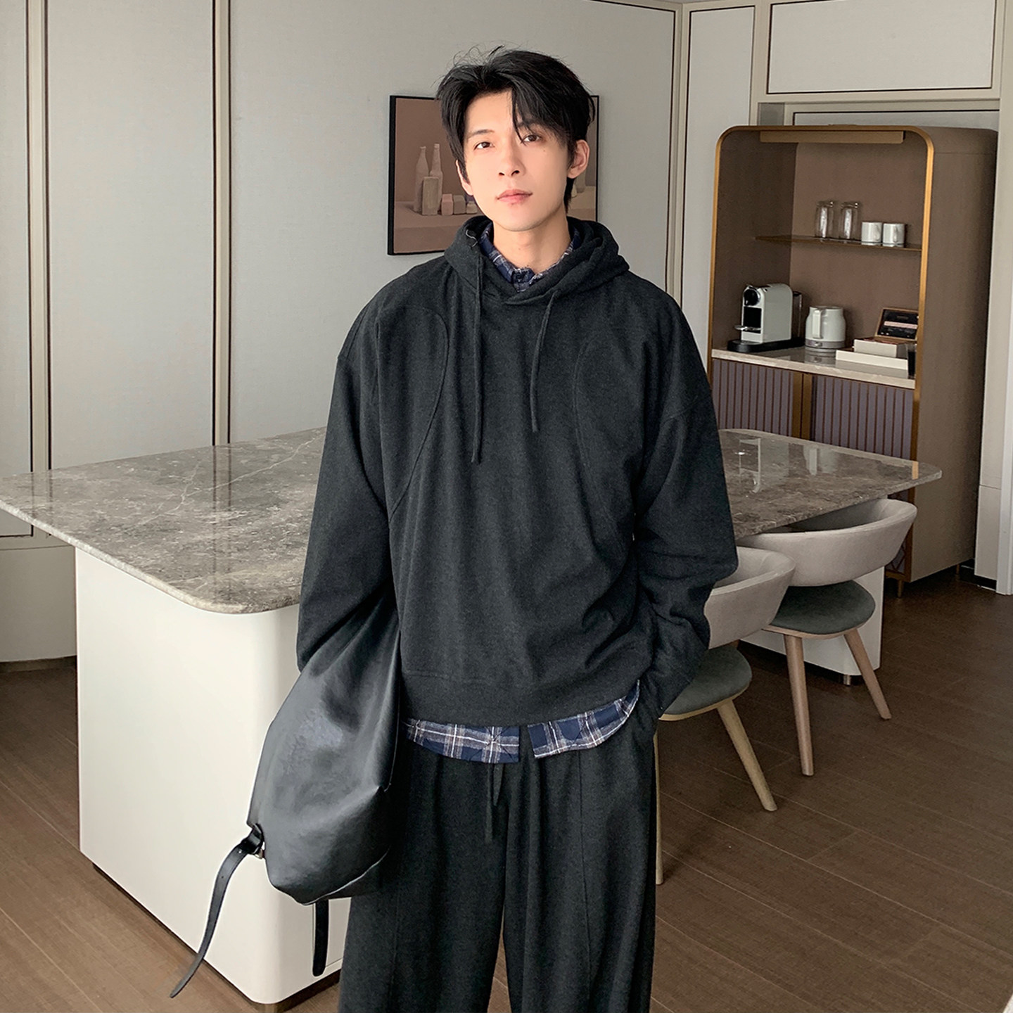 Hualun男生OOTD穿搭推荐:这款男士连帽韩版运动休闲卫衣套装,采用高品质棉质混纺面料,柔软亲肤、透气耐穿。整体设计简约时尚,连帽抽绳搭配前幅袋鼠兜,兼顾实用与潮流感。宽松版型剪裁,活动自如,轻松打造慵懒街头风。配色以经典黑、灰、藏青为主,百搭不挑人,适合日常出街、健身或居家休闲。上下装统一风格,省去搭配烦恼,轻松穿出韩系男友感。无论是搭配运动鞋还是帆布鞋,都能展现青春活力气息,是型男衣橱不可或缺的实用单品。