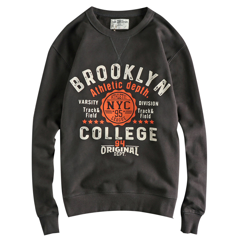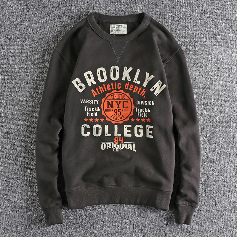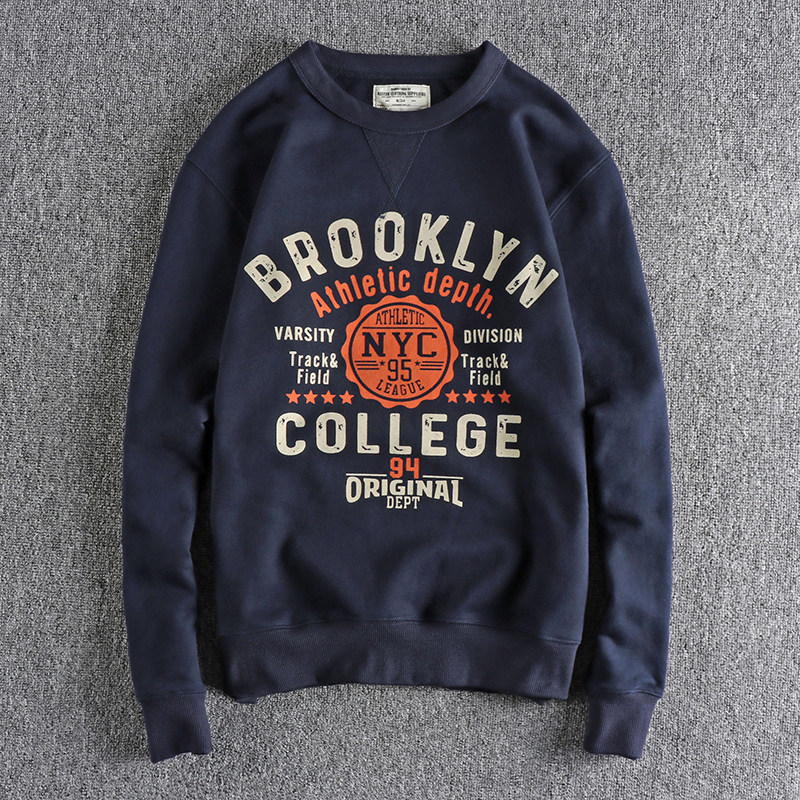淘宝新款阿美咔叽复古重磅厚实加绒圆领卫衣男 拔印字母图案长袖上衣