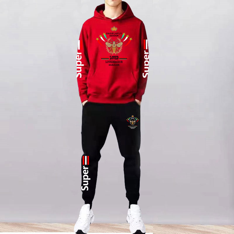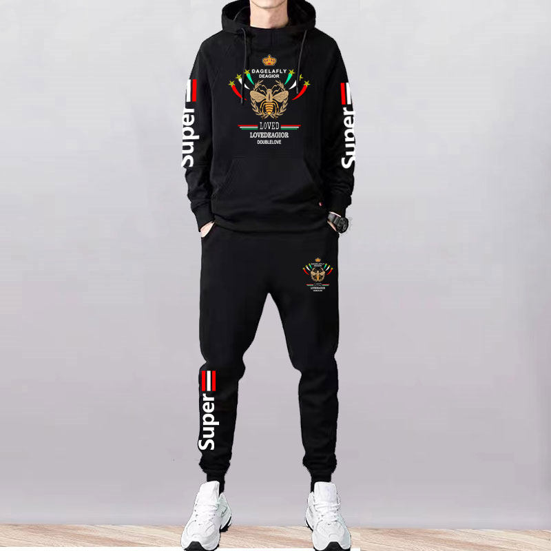 淘宝新款男士秋冬卫衣套装加厚男装休闲男士套装长袖长裤连帽两件套潮
