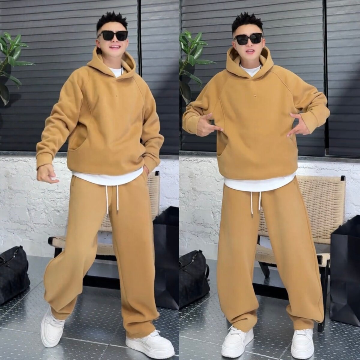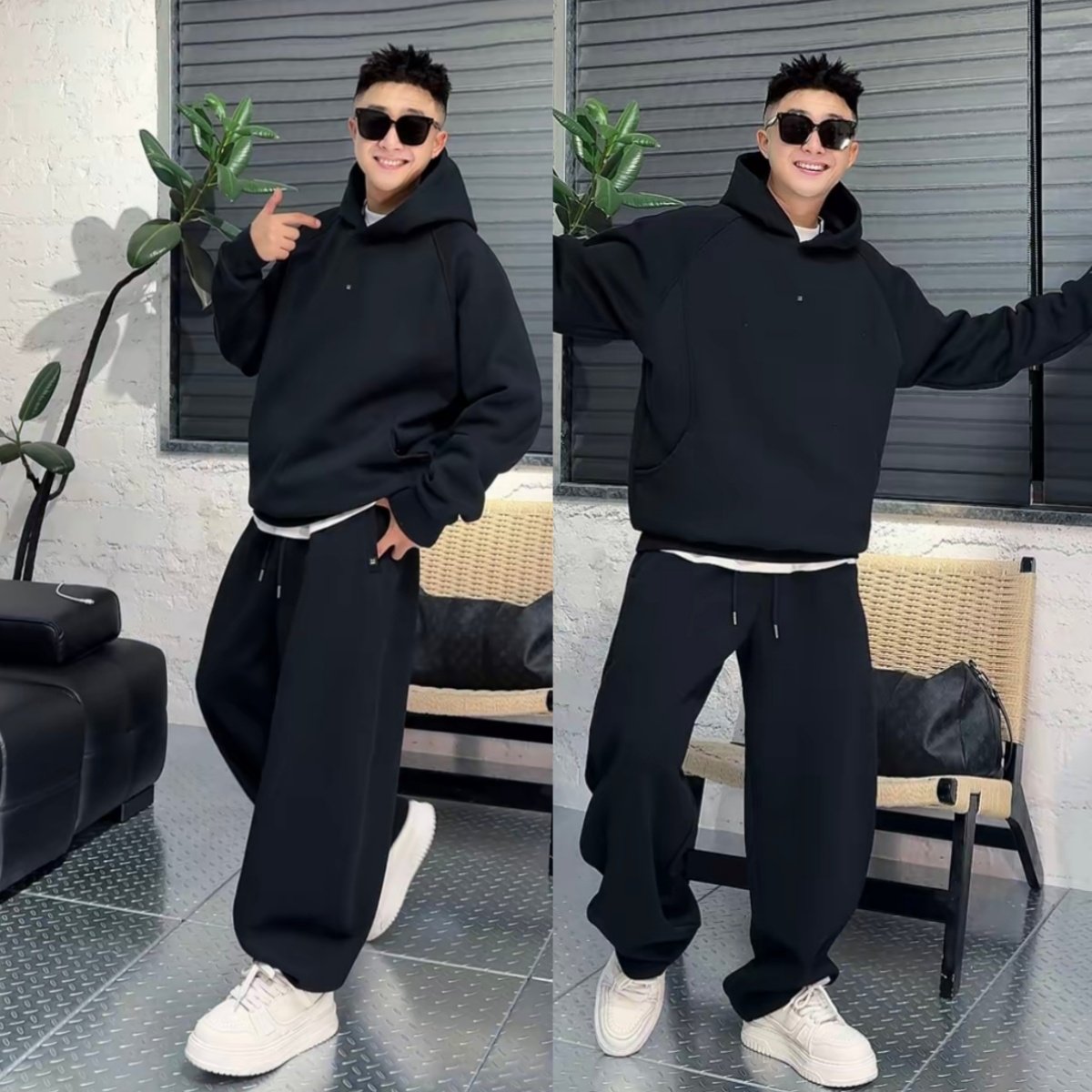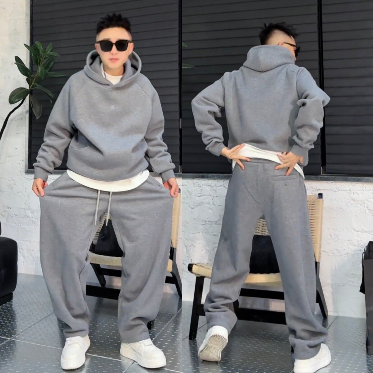 天回力冬季套装男款加绒一体绒学生连帽卫衣裤子男生帅气穿搭冬装男