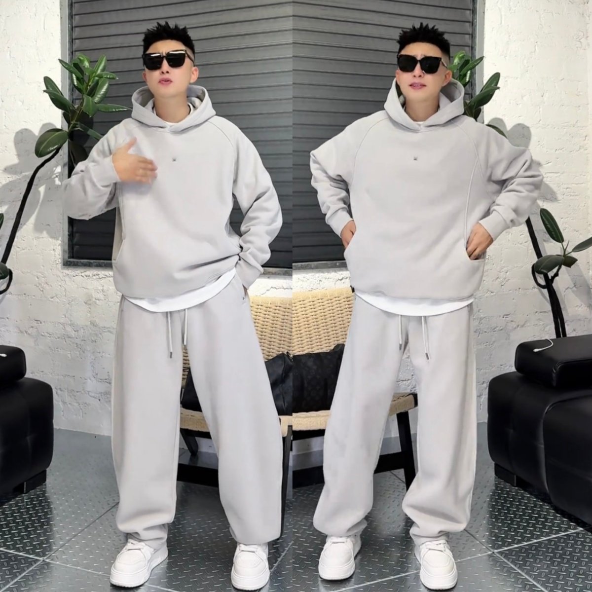 天回力套装男生冬季加绒运动休闲两件套青少年ootd穿搭一整套卫衣男