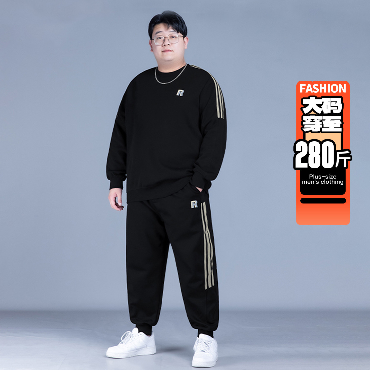 淘宝休闲运动套装男胖子加大圆领卫衣卫裤两件套秋冬款加绒大码男装潮