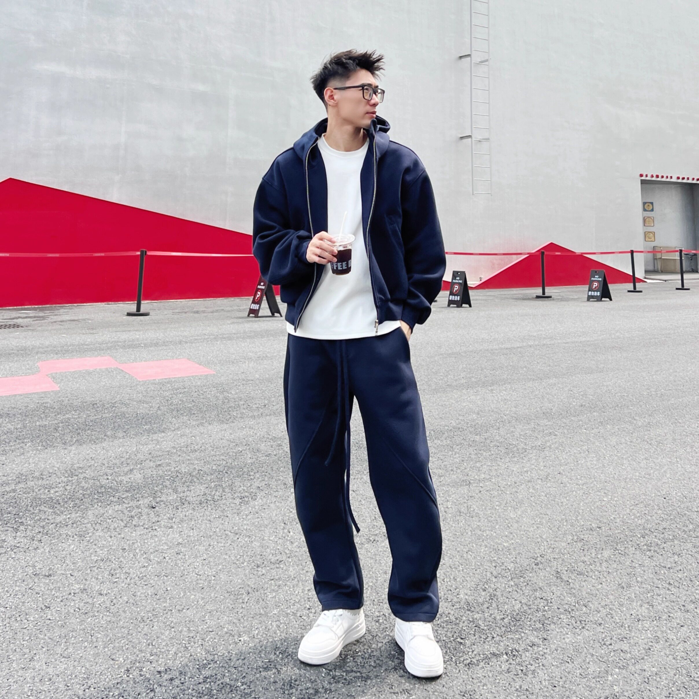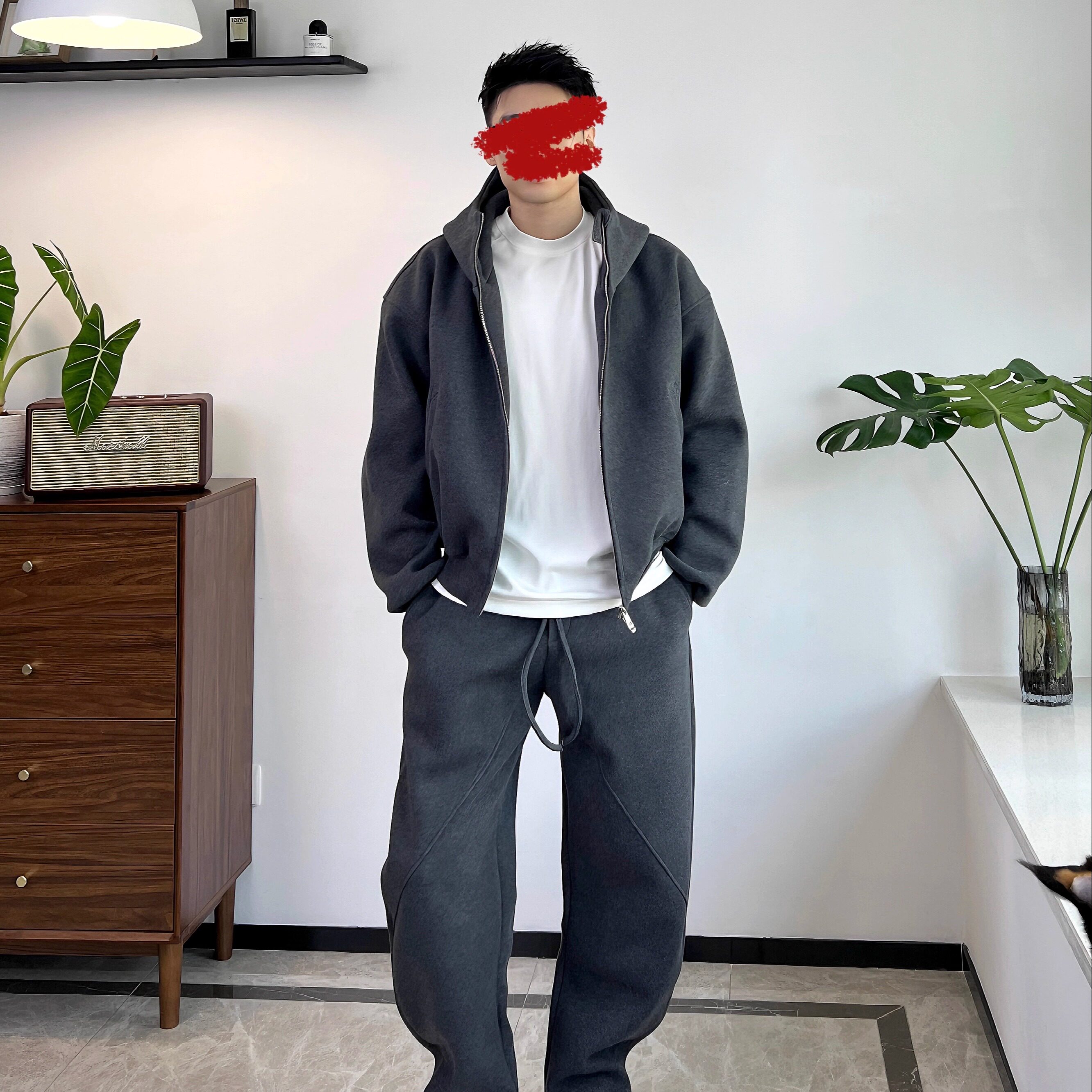 淘RESPONDENCE 休闲运动针织套装男款拉链卫衣立领外套直筒宽松卫裤