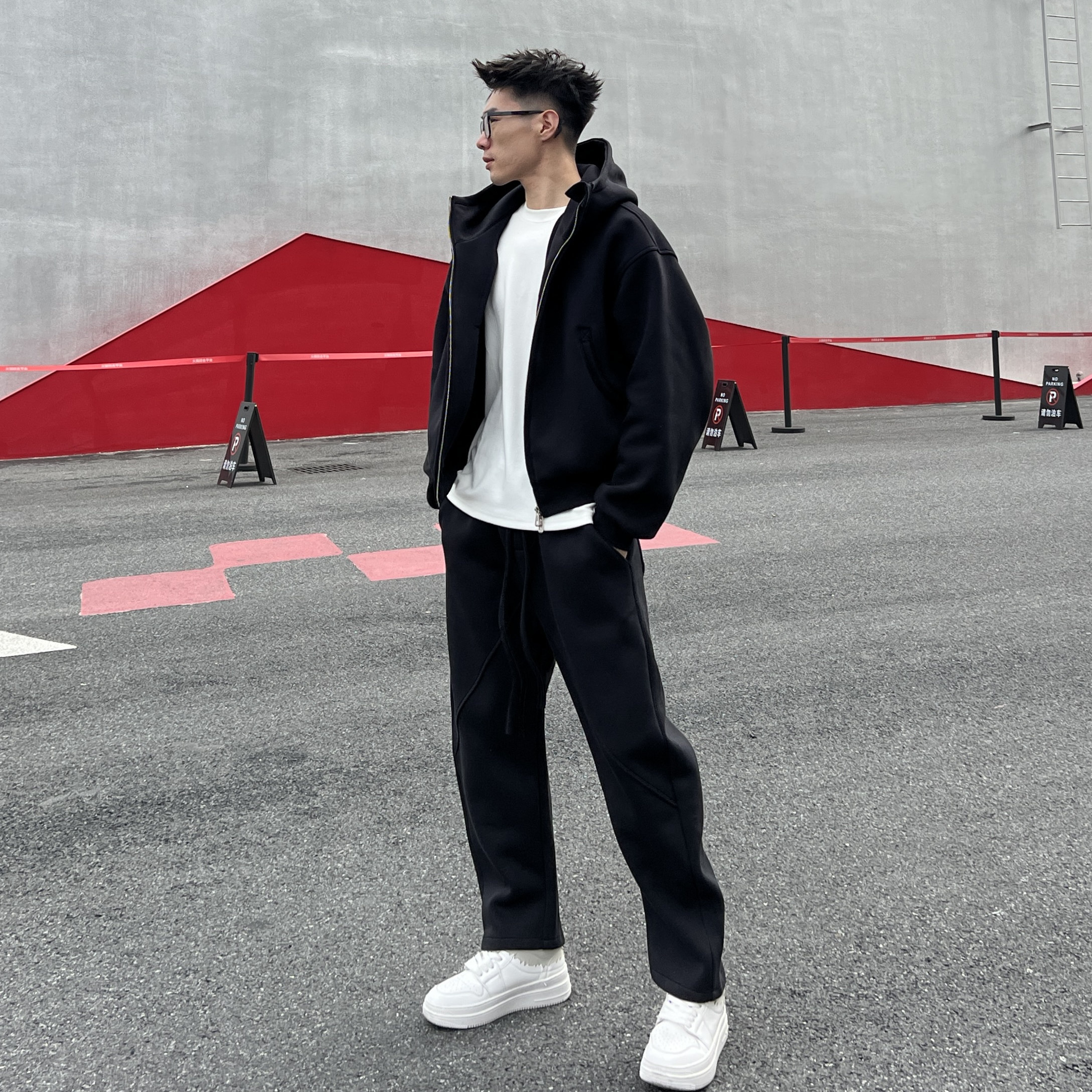 RESPONDENCE 休闲运动针织套装男款拉链卫衣立领外套直筒宽松卫裤