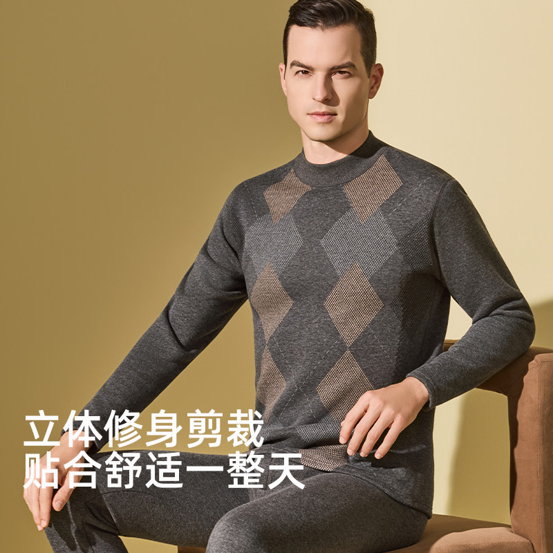 七匹狼高领保暖内衣男款纯棉大码秋衣秋裤套装全棉毛衫半中领上衣
