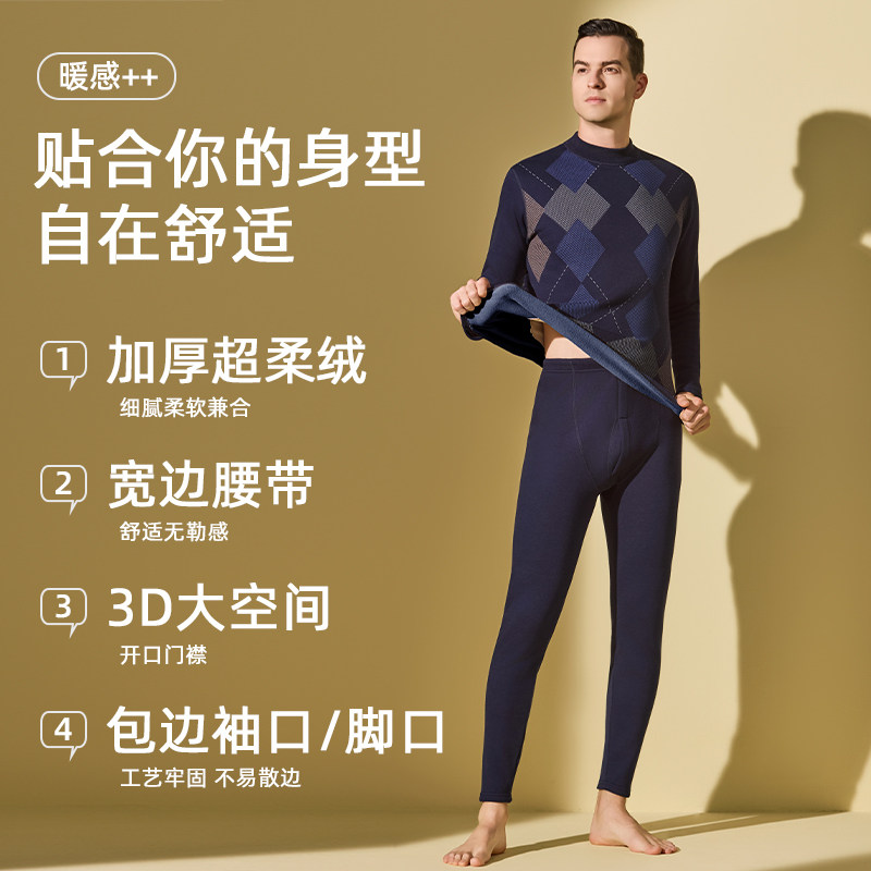 淘情侣保暖内衣套装女士无痕男士打底秋衣秋裤套装秋冬季修身睡衣