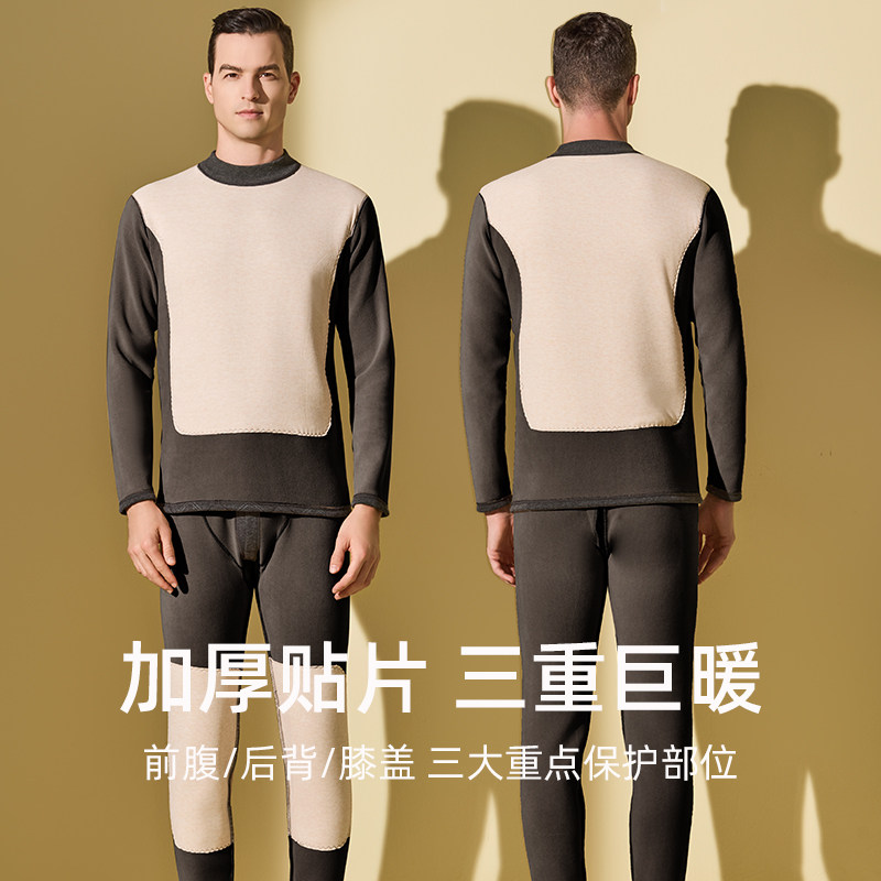 天猫恒源祥中老年人秋衣秋裤男士套装纯棉厚款全棉毛衫圆领保暖内衣爸