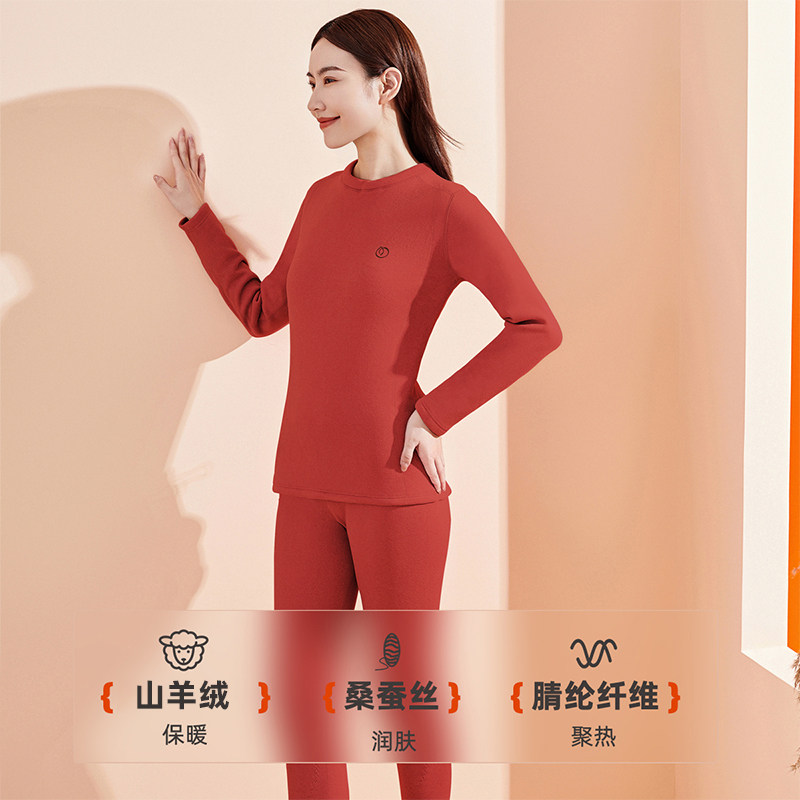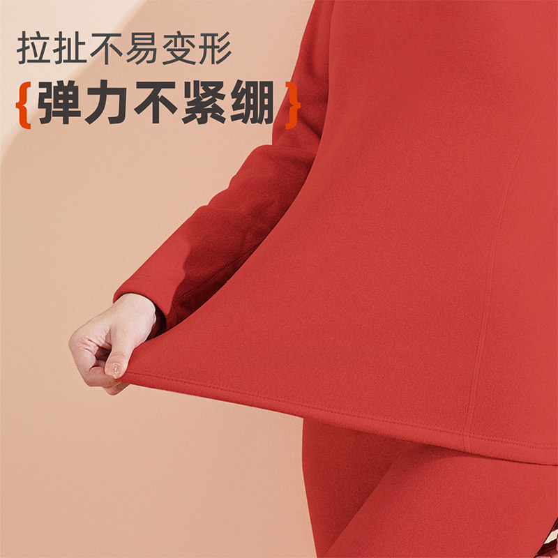 天猫雅黛俪女士加绒加厚保暖套装本命年结婚红色内衣女秋衣秋裤深冬款