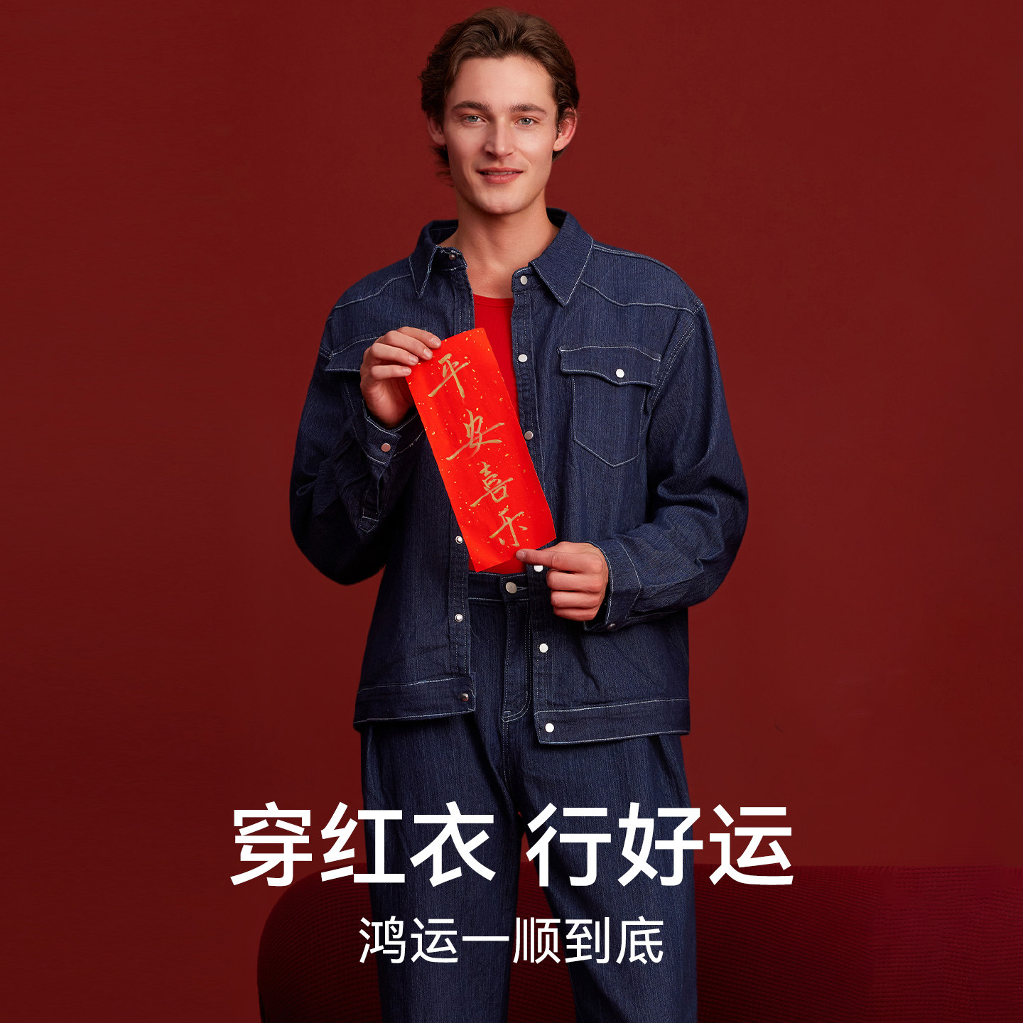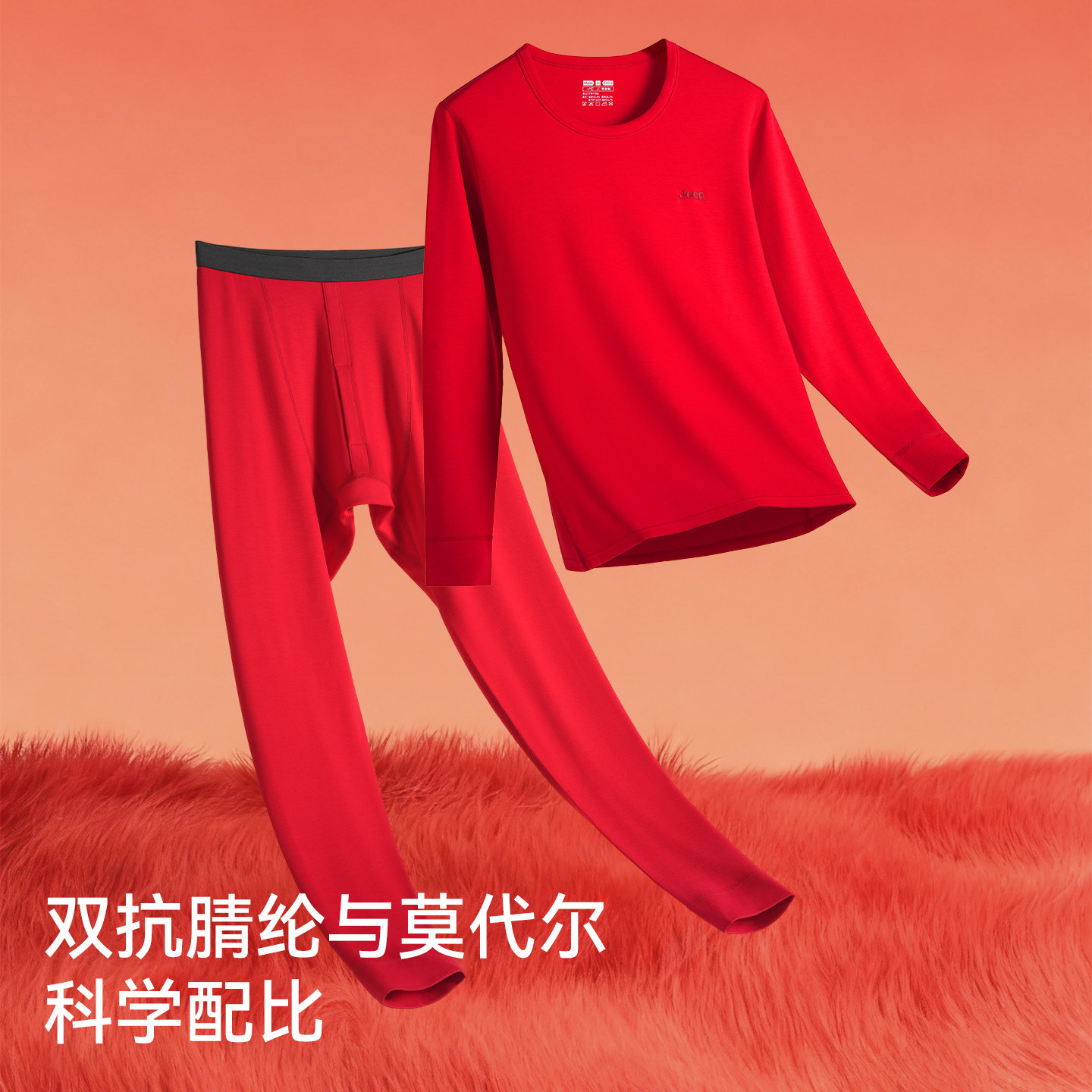 天猫JEEP红色本命年男士保暖内衣套装2026年马年衣服德绒秋衣秋裤男款