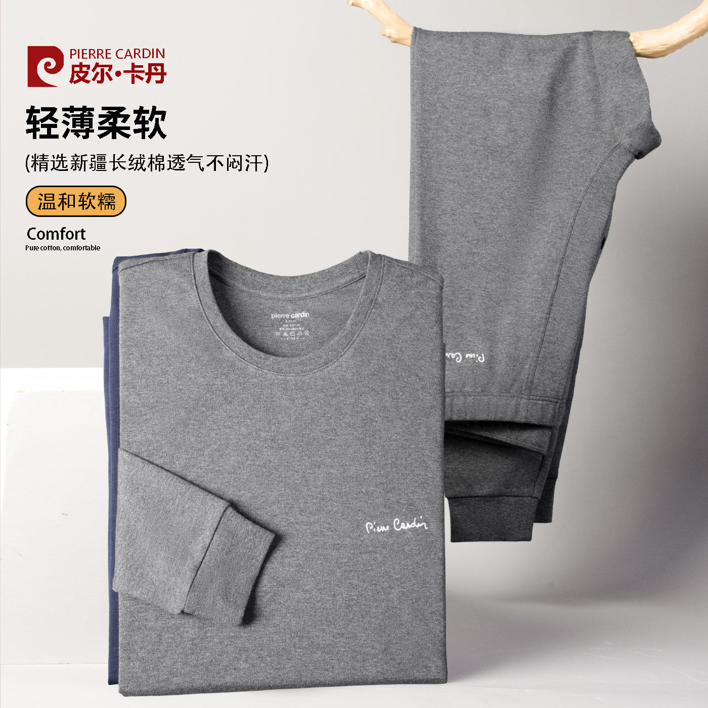 天猫皮尔卡丹内衣男士纯棉圆领弹力秋衣秋裤套装百分棉春秋季保暖套装