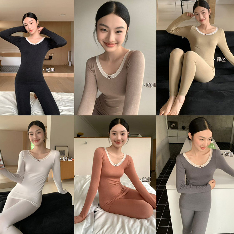 淘宝韩社保暖内衣套装女士2025新款绵羊毛自发热打底衫秋衣秋裤女款冬