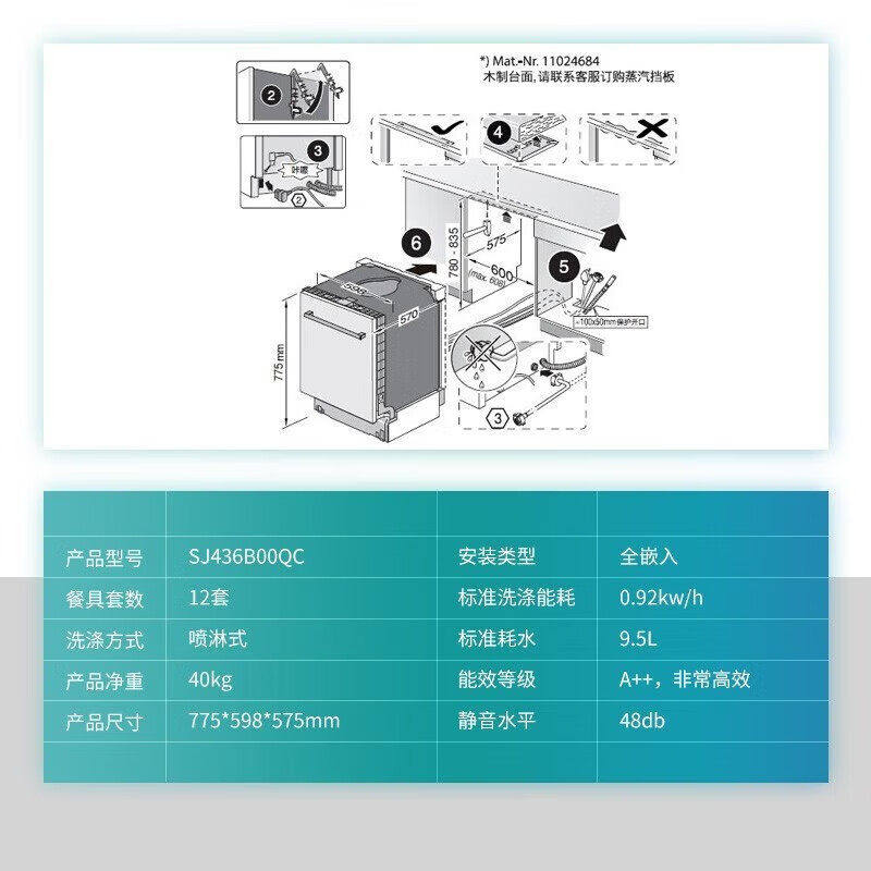 淘宝SIEMENS/西门子 SJ436B00QC 嵌入式12套洗碗机高温除菌双重烘干