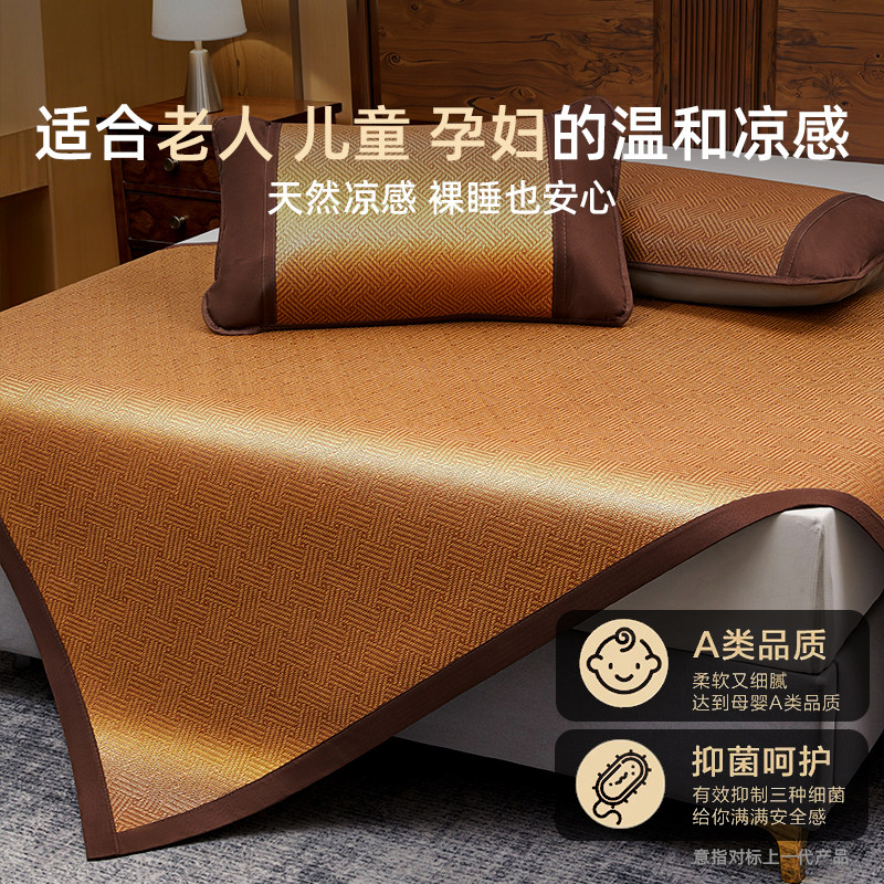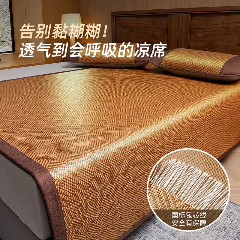 淘良品拾光丨中式编织藤凉席三件套夏季透气凉爽席子可折叠床上用品