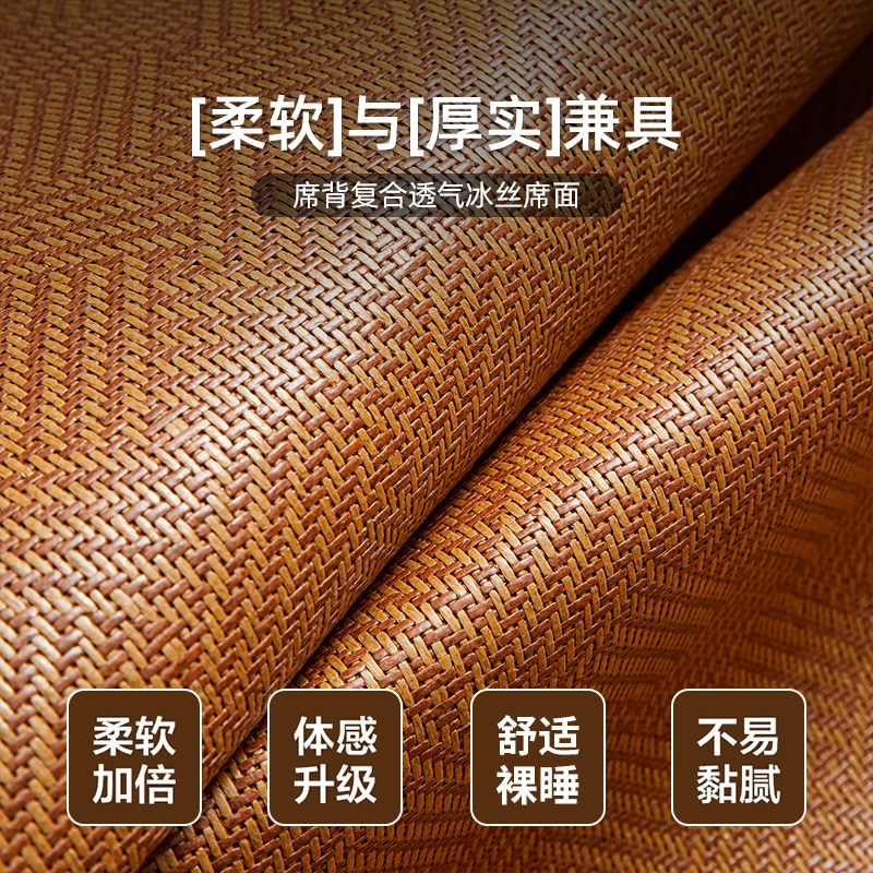 天夏季艾草冰丝凉席床笠款三件套冰藤席凉感可机洗水洗折叠空调席子