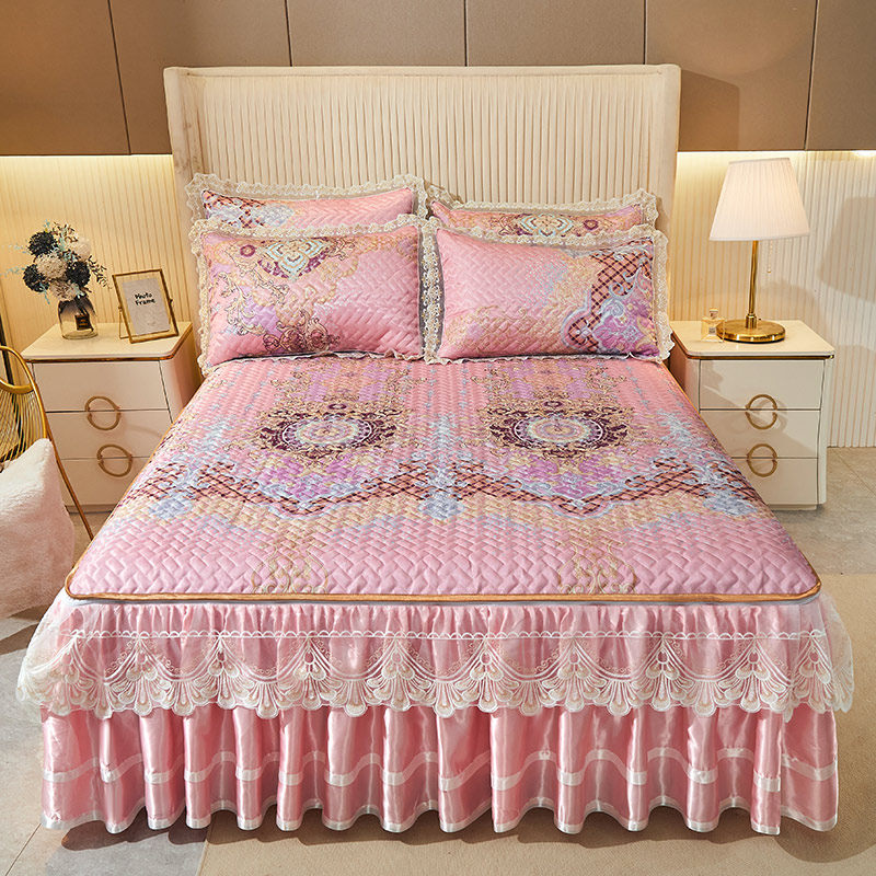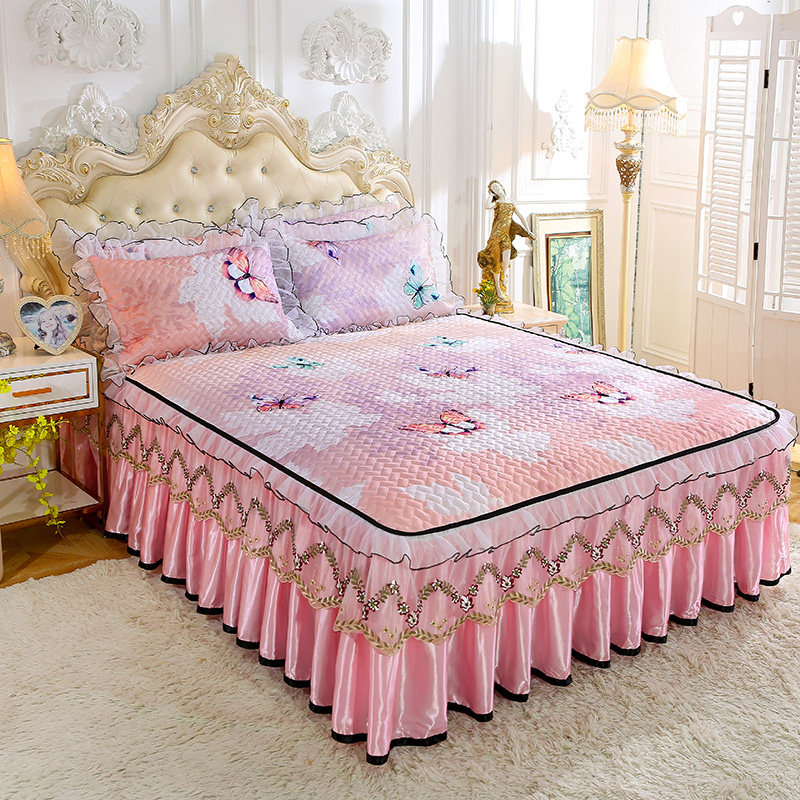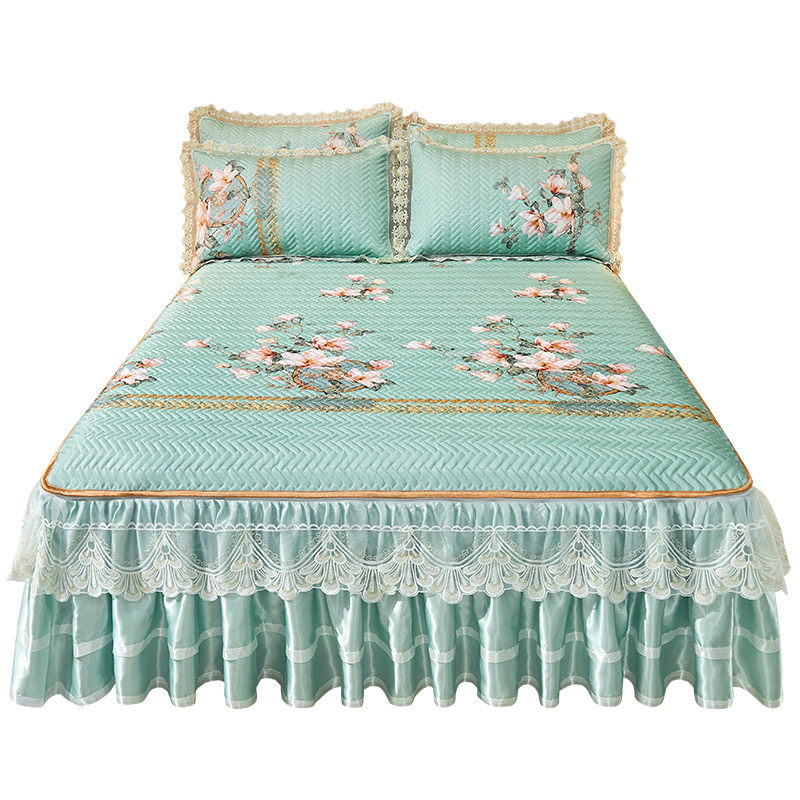 淘宝夏季欧式冰丝凉席款夹棉床裙三件套1.5m1.8米双人床加厚床罩+枕套