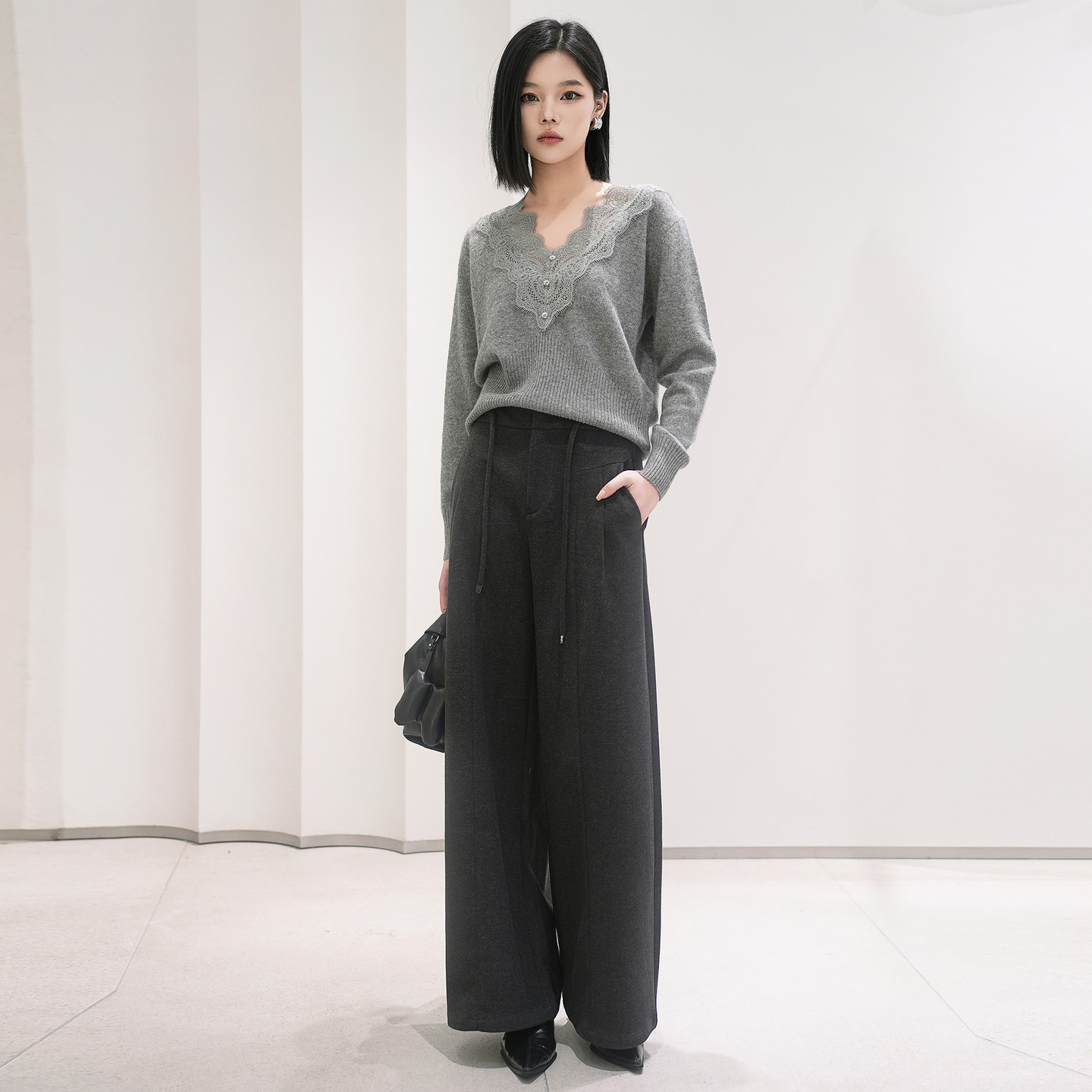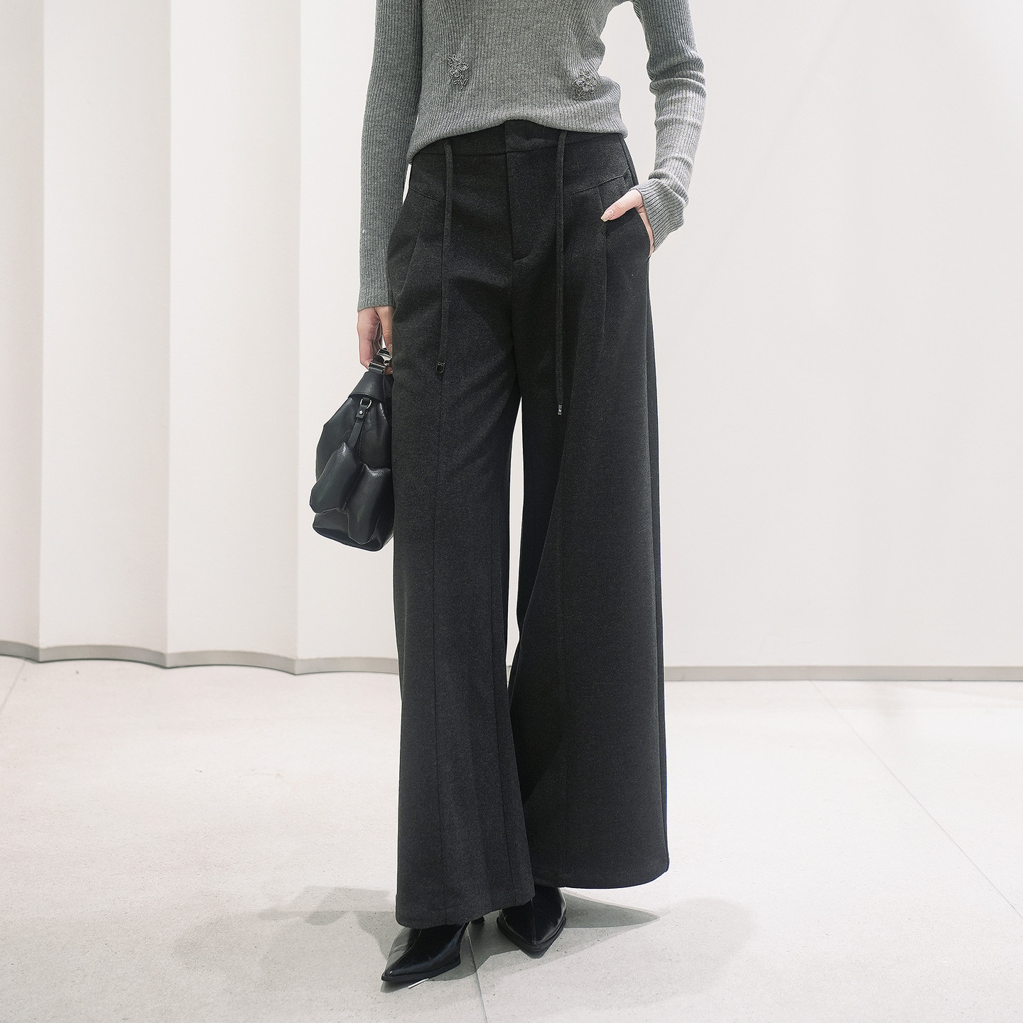 天ZUCZUG素然 女士经典休闲仿羊毛廓形宽松直筒裤西裤