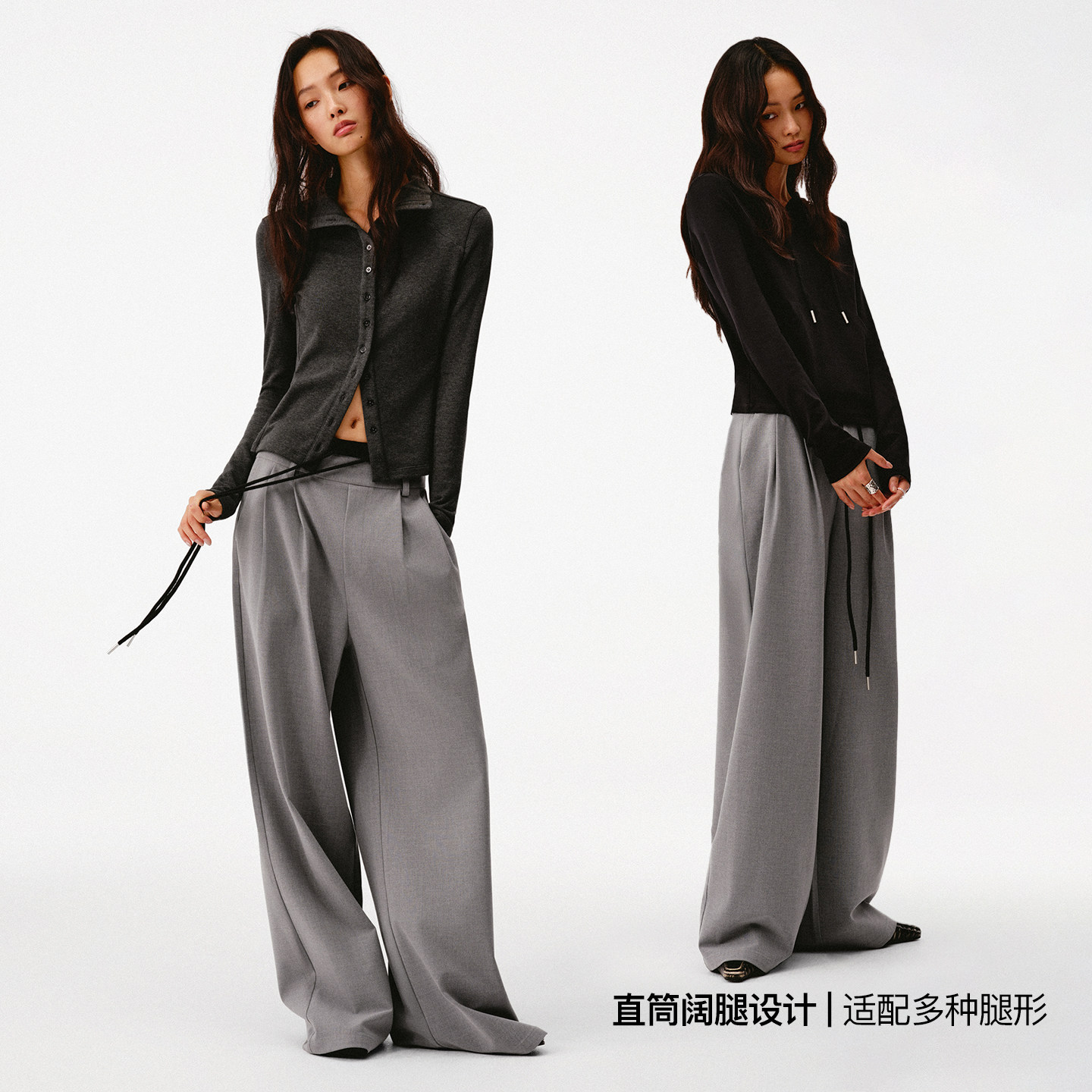 betu百图女装2024年秋装新款高腰垂感休闲长裤西裤直筒阔腿裤子