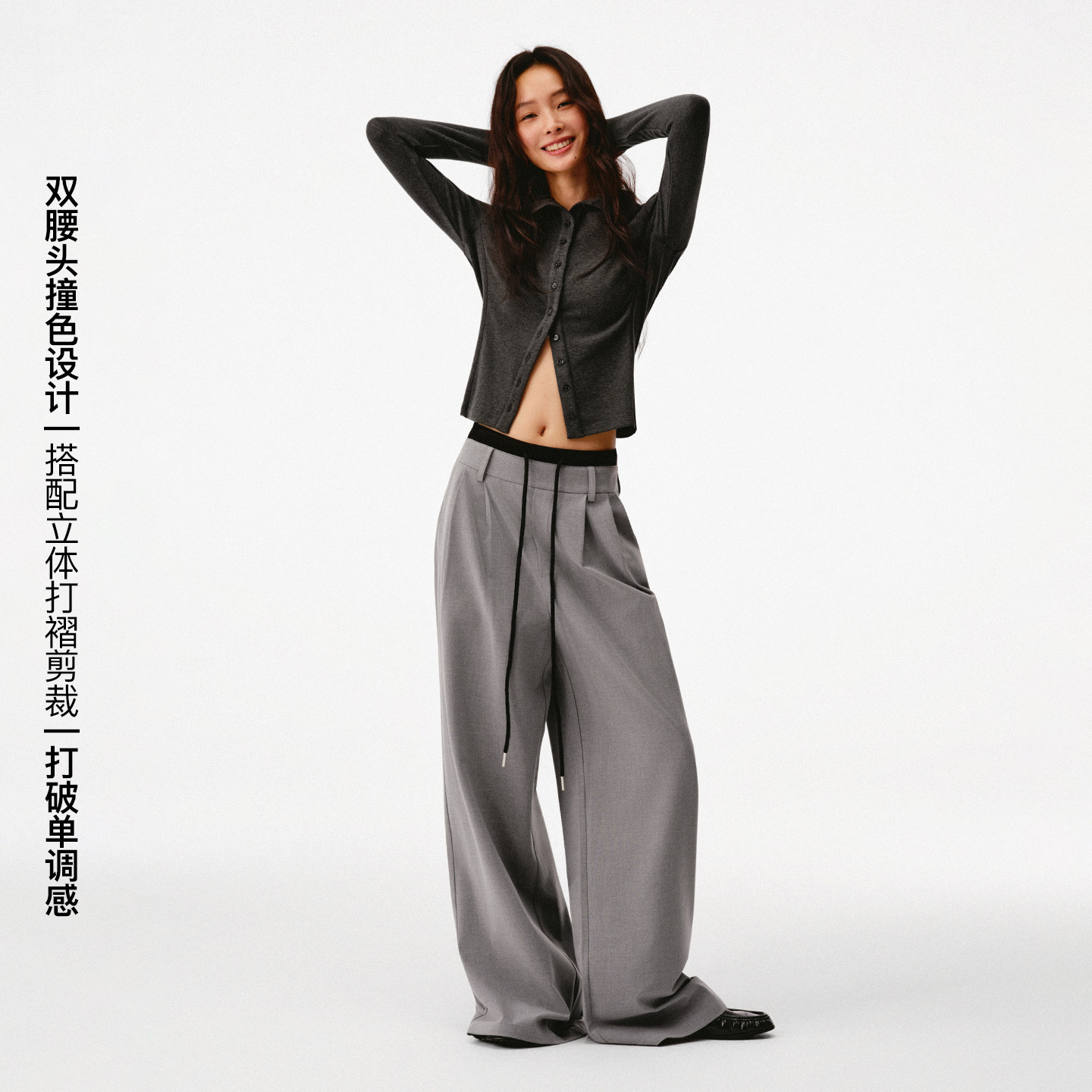 天betu百图女装2024年秋装新款高腰垂感休闲长裤西裤直筒阔腿裤子