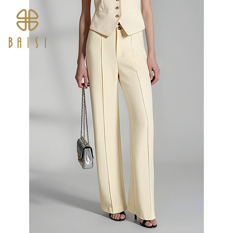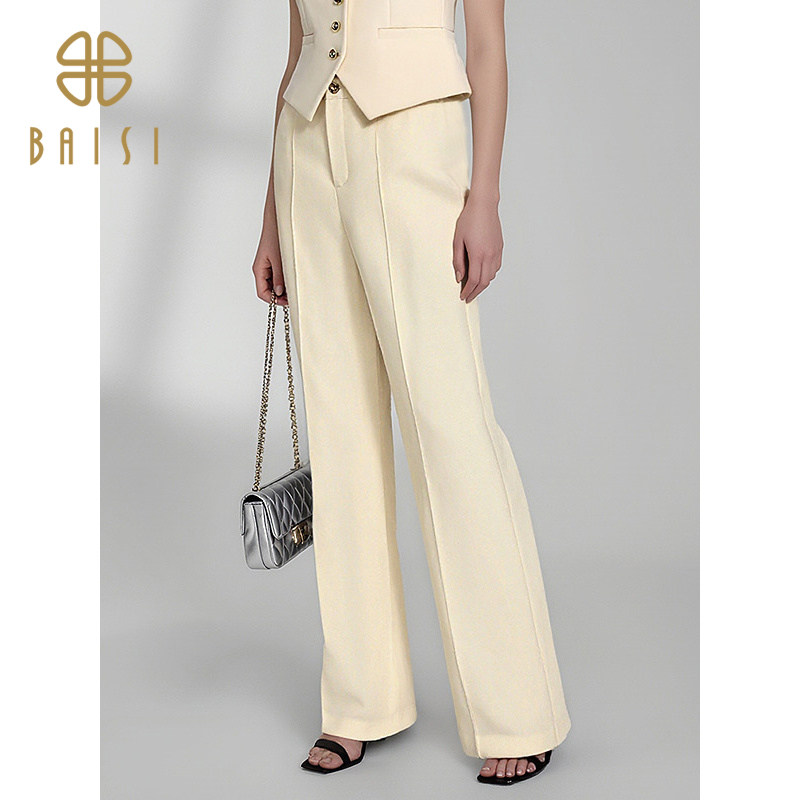 天猫2025冬季新品百丝高腰直筒西裤显气质简约通勤时尚宽松阔腿长裤女