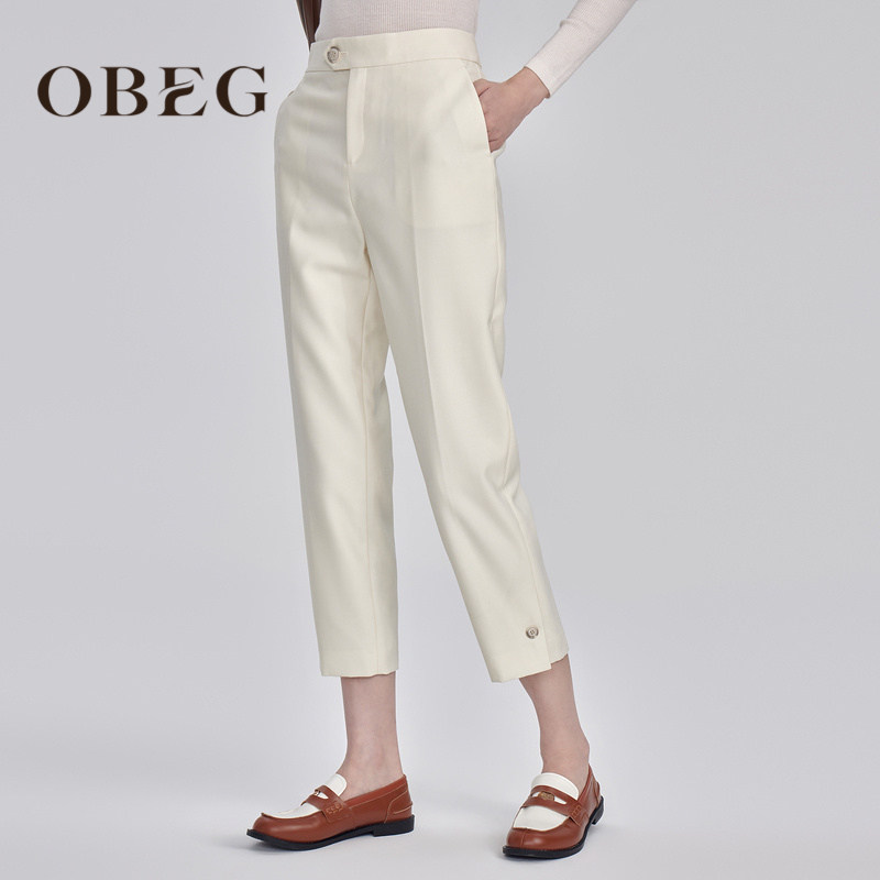 天猫OBEG欧碧倩冬款简约通勤羊毛九分裤女高腰设计感西裤10444012