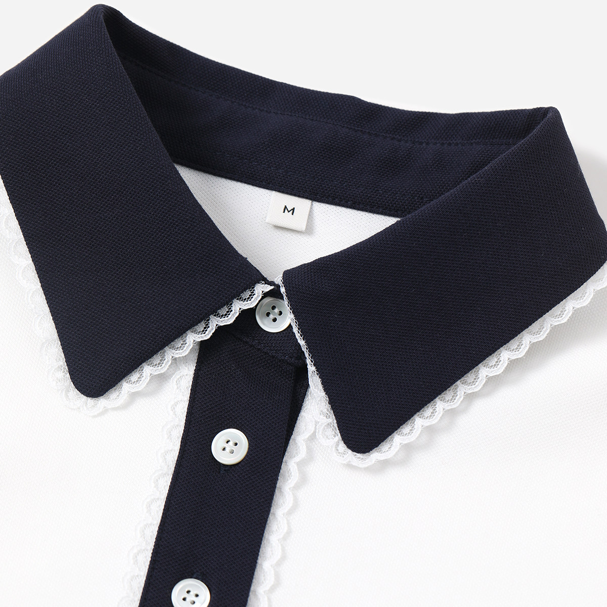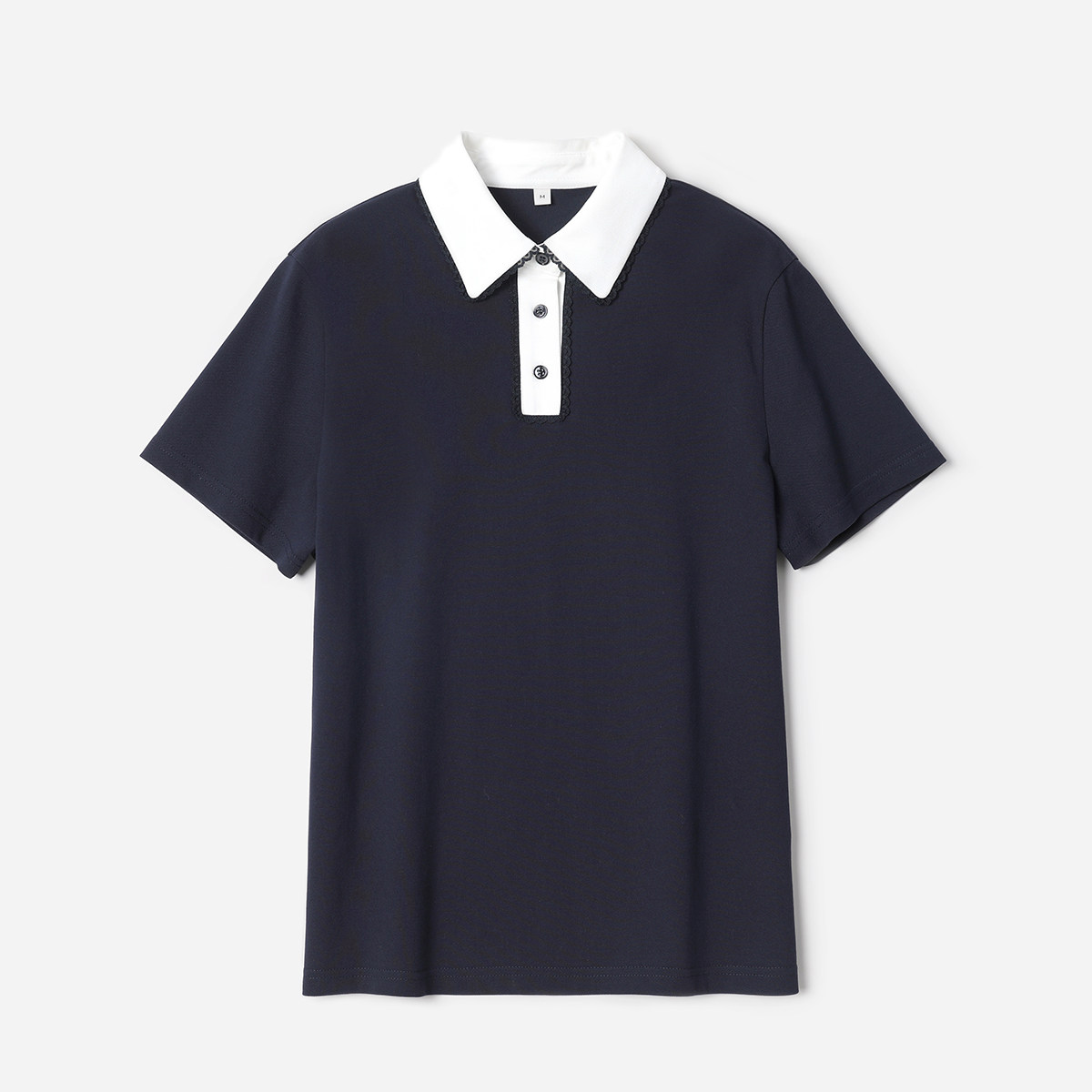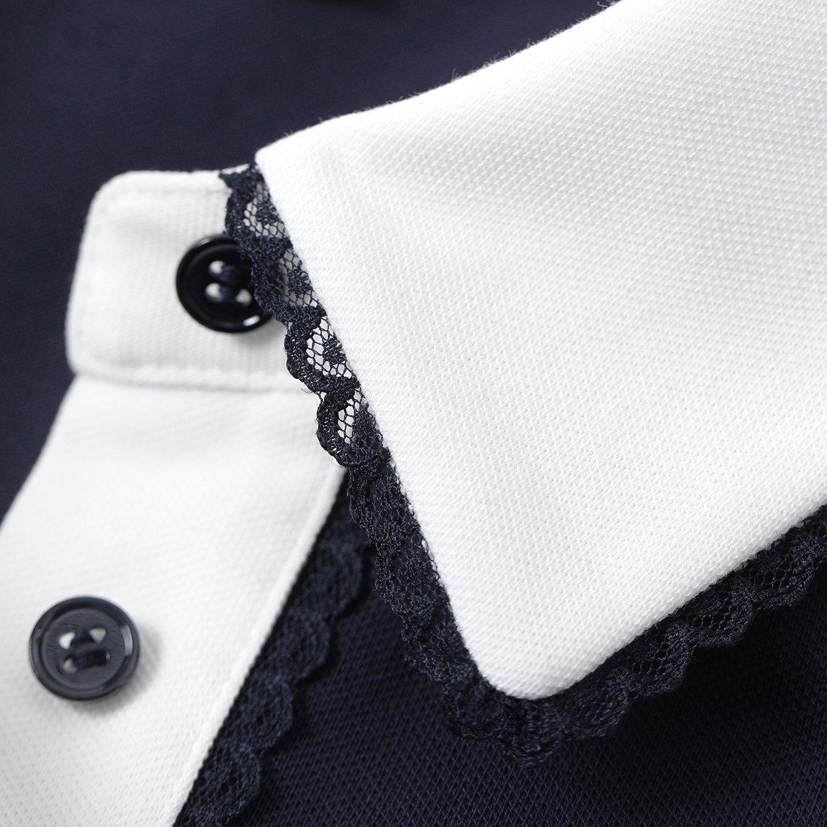 淘宝WTX08185 茉莉雅集 M1U系学院风蕾丝边POLO领珠地弹棉短袖T恤女