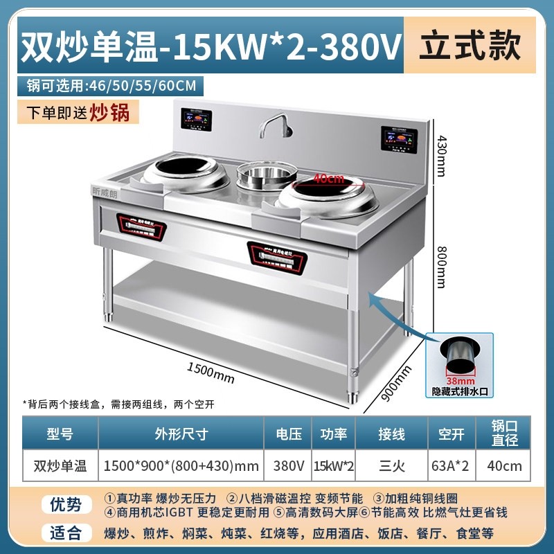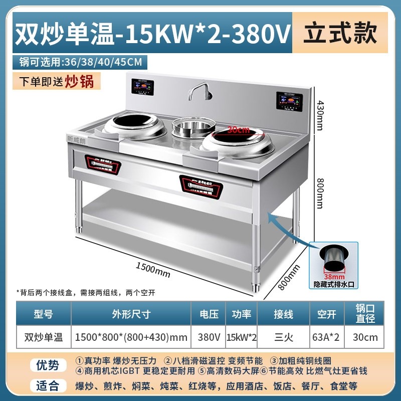 淘柜式商用电磁炉15000W凹面大功率头电灶30KW厨房饭店酒店20千瓦双
